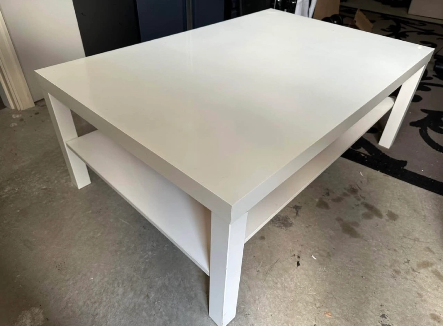 White coffee table with lower shelf.
