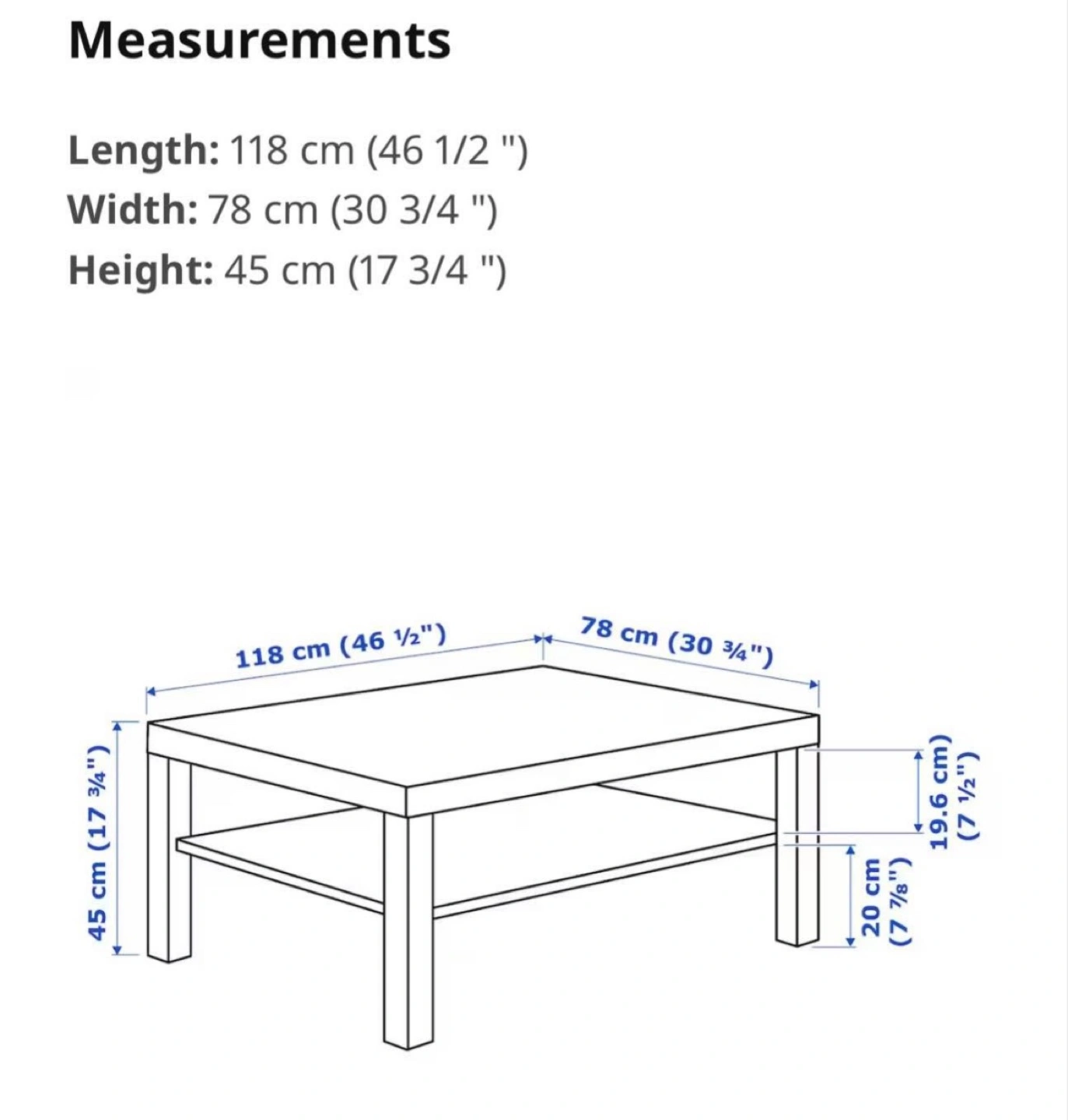 Measurements: 118cm L x 78cm W x 45cm H.