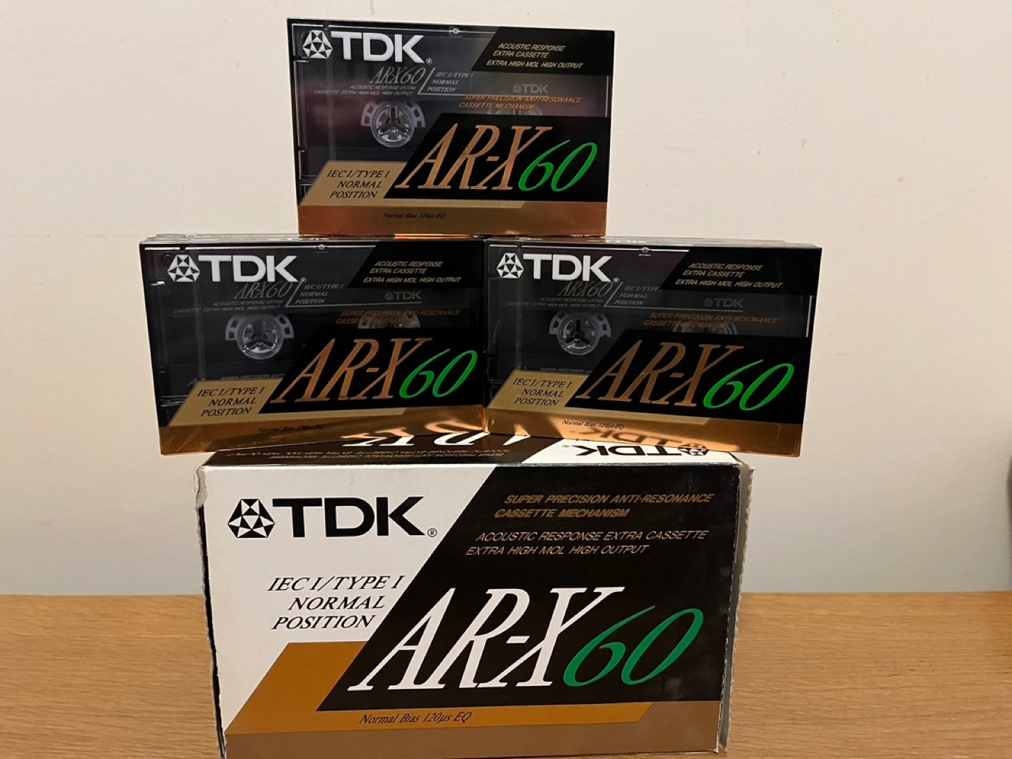Three new and unopened TDK AR-X60 audio cassette tapes. Type I normal position. Made in Japan. Sealed in original wraps. 5 tapes available.