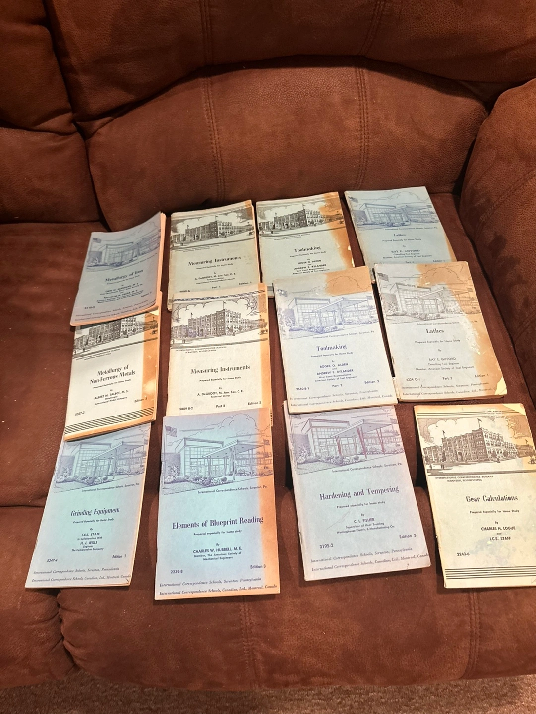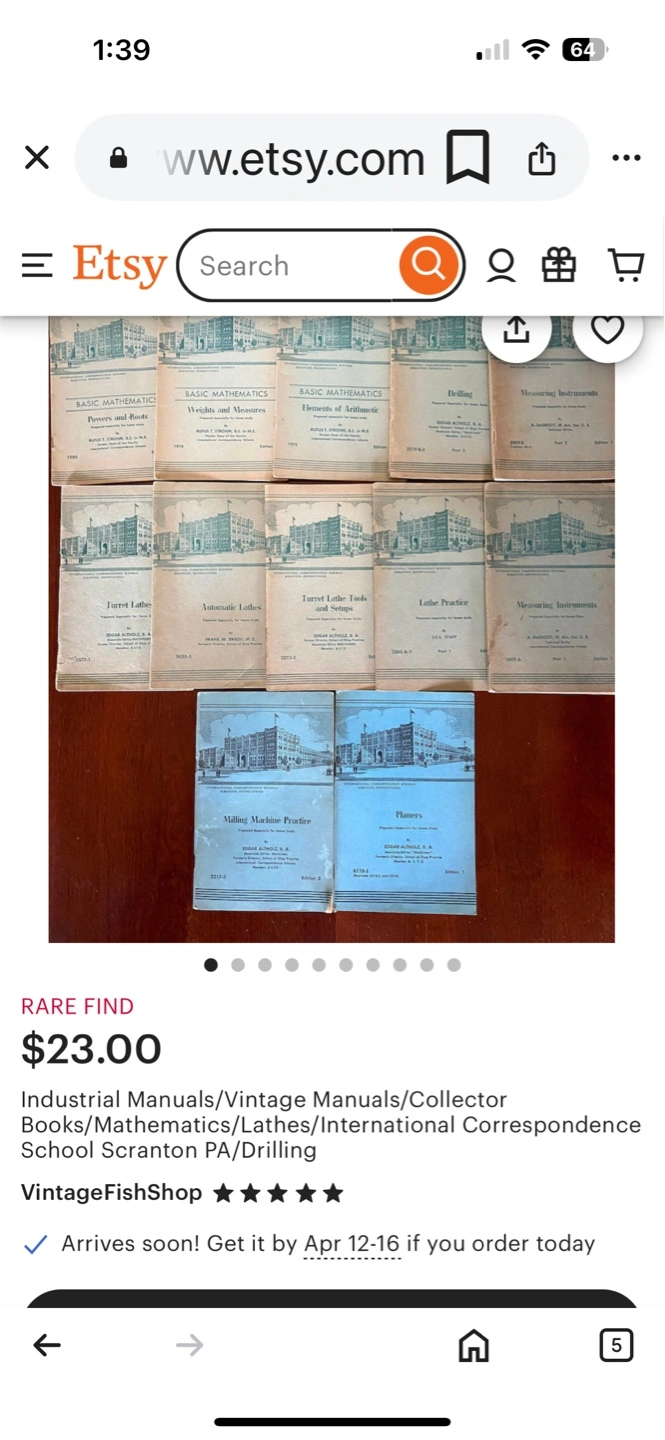 Collection of vintage International Correspondence Schools (ICS) manuals. Subjects include lathes, mathematics, blueprint reading, and more. Great for collectors or industrial history buffs. Various editions and parts included.
