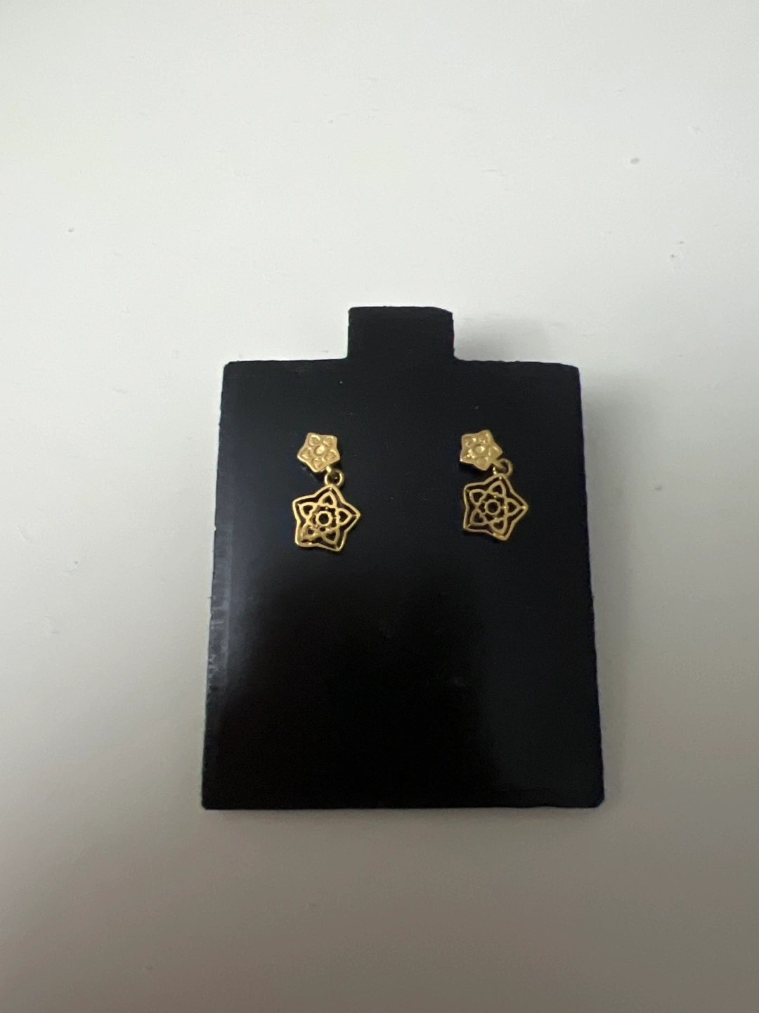 464Pair of gold-tone earrings. Features two stars; one solid, one filigree. Post-style. Pick up Bathurst and Wilson