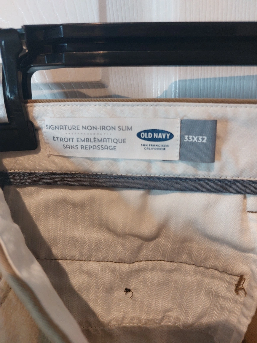 Old Navy Men's Khaki Slim Fit Trousers Men's khaki trousers. Slim fit. Non-iron. Size 33x32. In excellent condition.