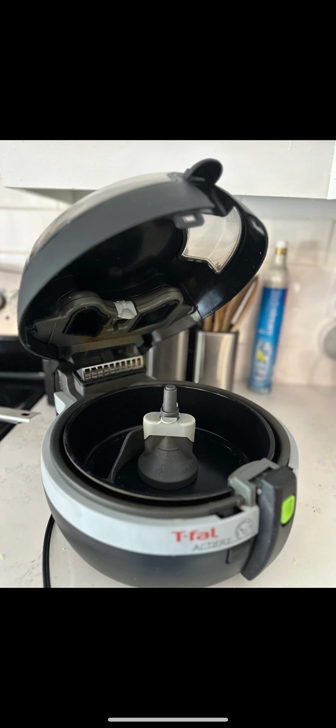 Air fryer, used, comes with all parts shown. Great for cooking various meals. Lid opens and closes smoothly. Non-stick cooking surface. Easy to clean.