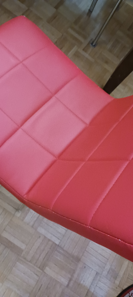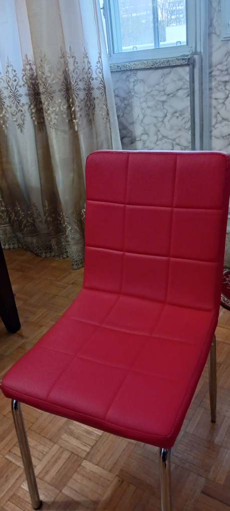 Four red dining chairs. Modern design. Chrome legs. Good condition. Each chair$20