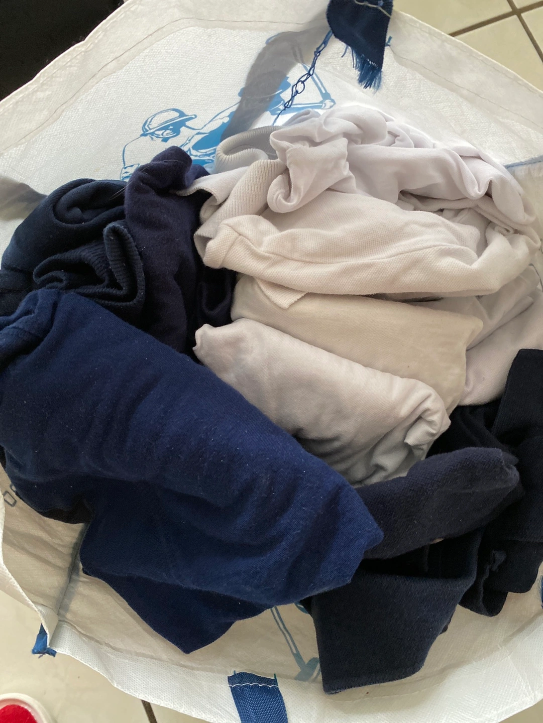 Kids blue and white (uniform coloured) clothing bundle. Includes blue and white short and long sleeved polo shirts and crew shirts and navy blue joggers. Ranging from Size 6-8. Pre-owned, good condition. Take all for $15 or your best offer