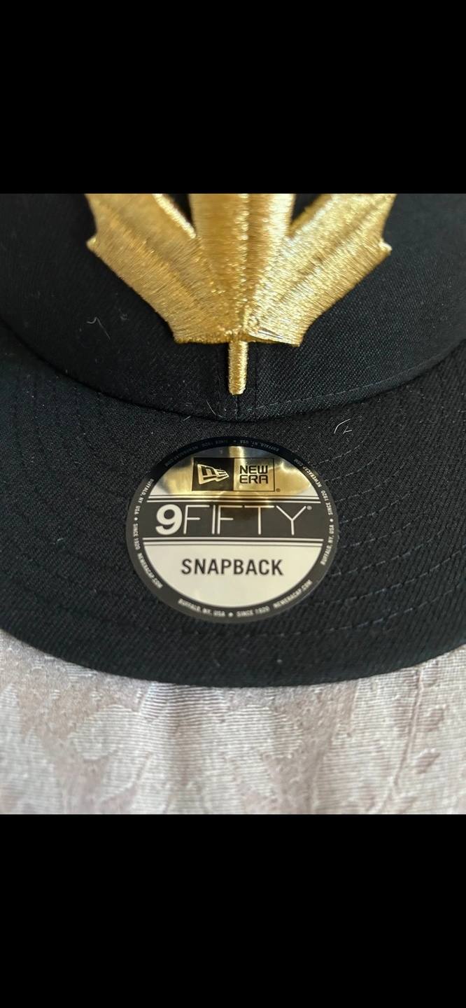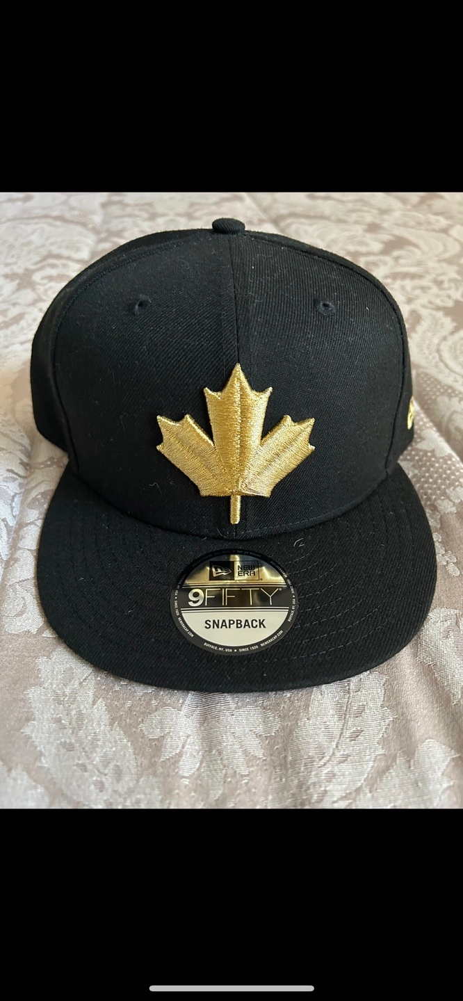 Black 9Fifty snapback hat. Features gold Toronto lettering and maple leaf. New with tags.