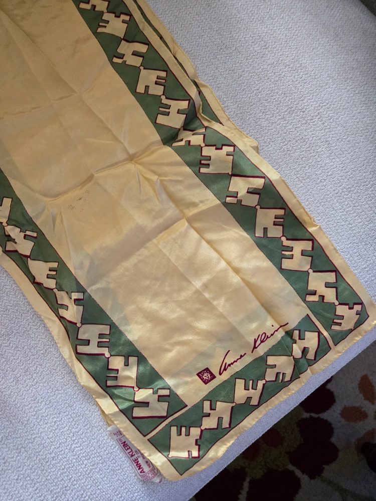 Anne Klein 100% silk Teal and White patterned silk scarf