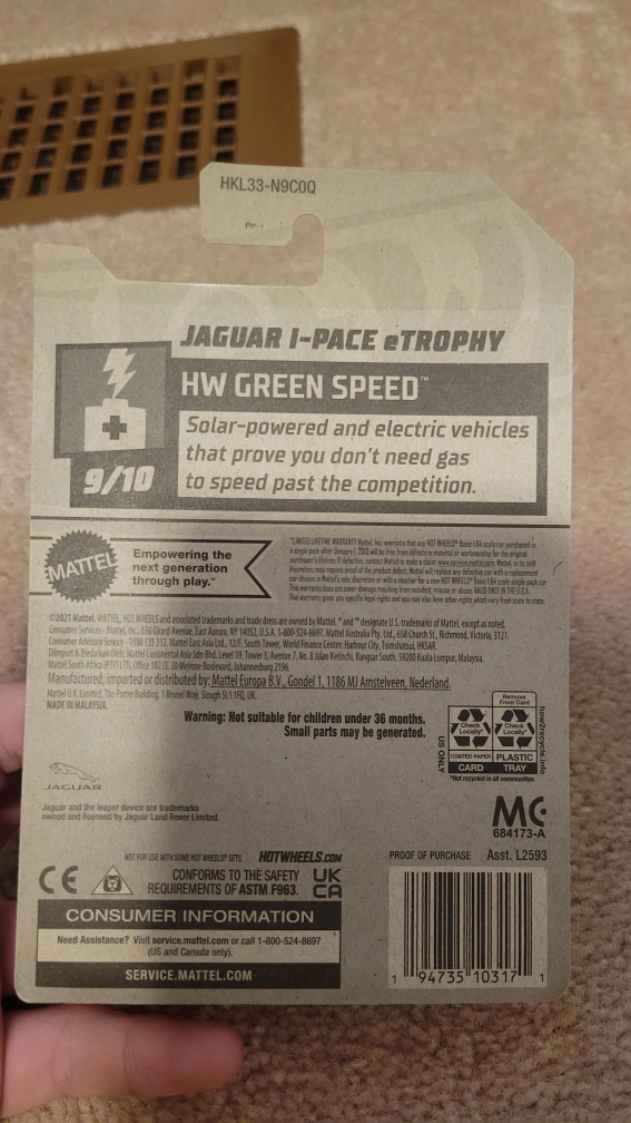 Very rare ZAMAC. Hot Wheels diecast car. Jaguar I-Pace eTrophy. Part of the HW Green Speed series. Number 9/10. Collectible.