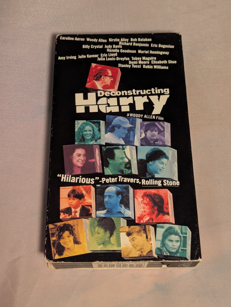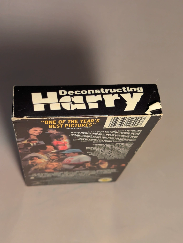Vintage VHS tape of the Woody Allen film, Deconstructing Harry. Features a star-studded cast. In Excellent condition with some minor wear on the corners of box.