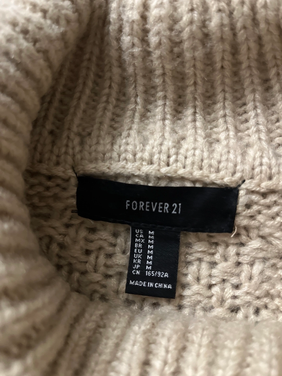 Forever 21 Beige Cable Knit Turtleneck Sweater - Size M