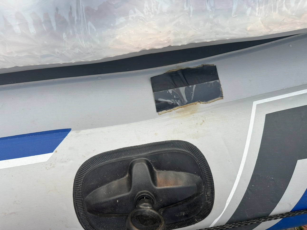 Details in the picture. There was two leaks which has already fixed and good to go for adventure. Pump is not included. Extra inflatable bed included