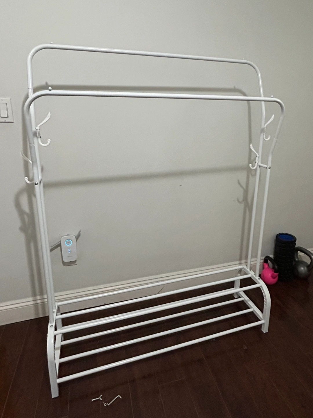 White Metal Clothing Rack with Shoe Shelf