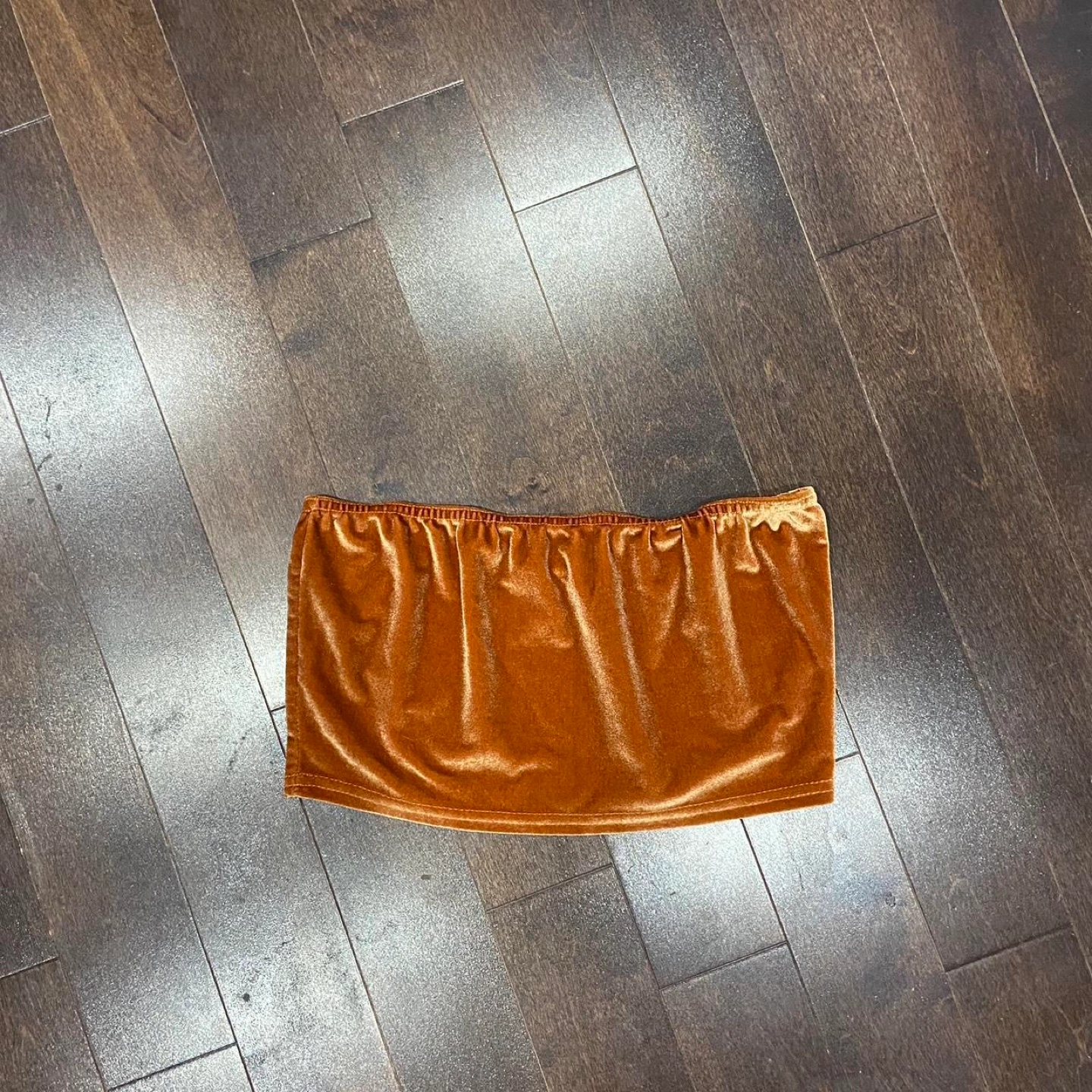 Brand new and unworn bandeau style tube top. only tried on. Such a beautiful colour in person and would look amazing with black pants and a blazer or something. Size medium from prettylittlething. very cropped as shown on model