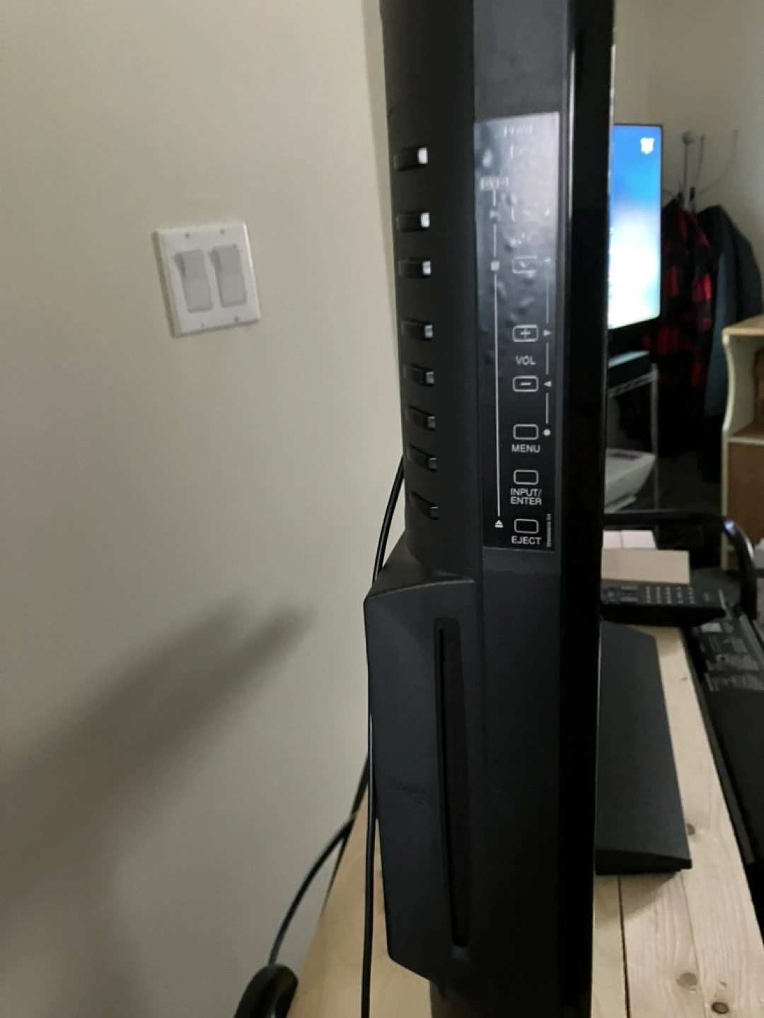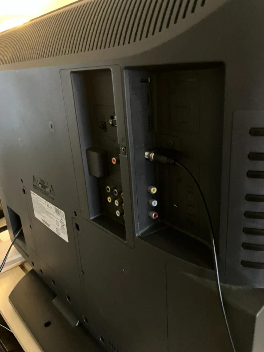 Functional Sanyo LCD television. 32 inches. Includes power cord. Various connection ports on the back and remote. Also plays DVDs and includes remote .