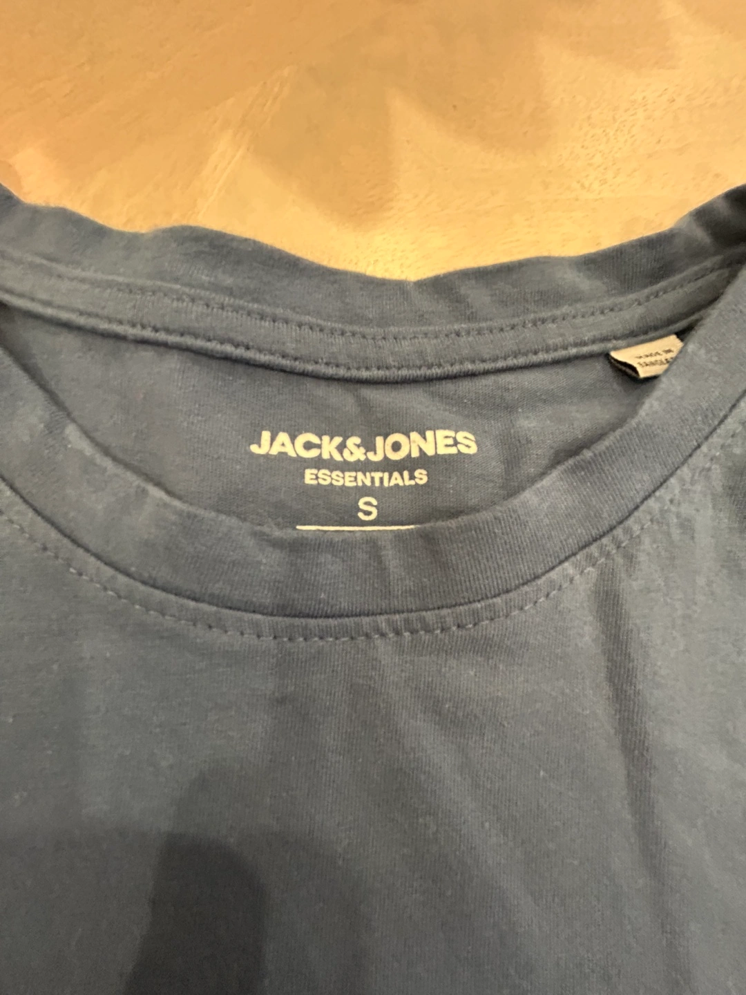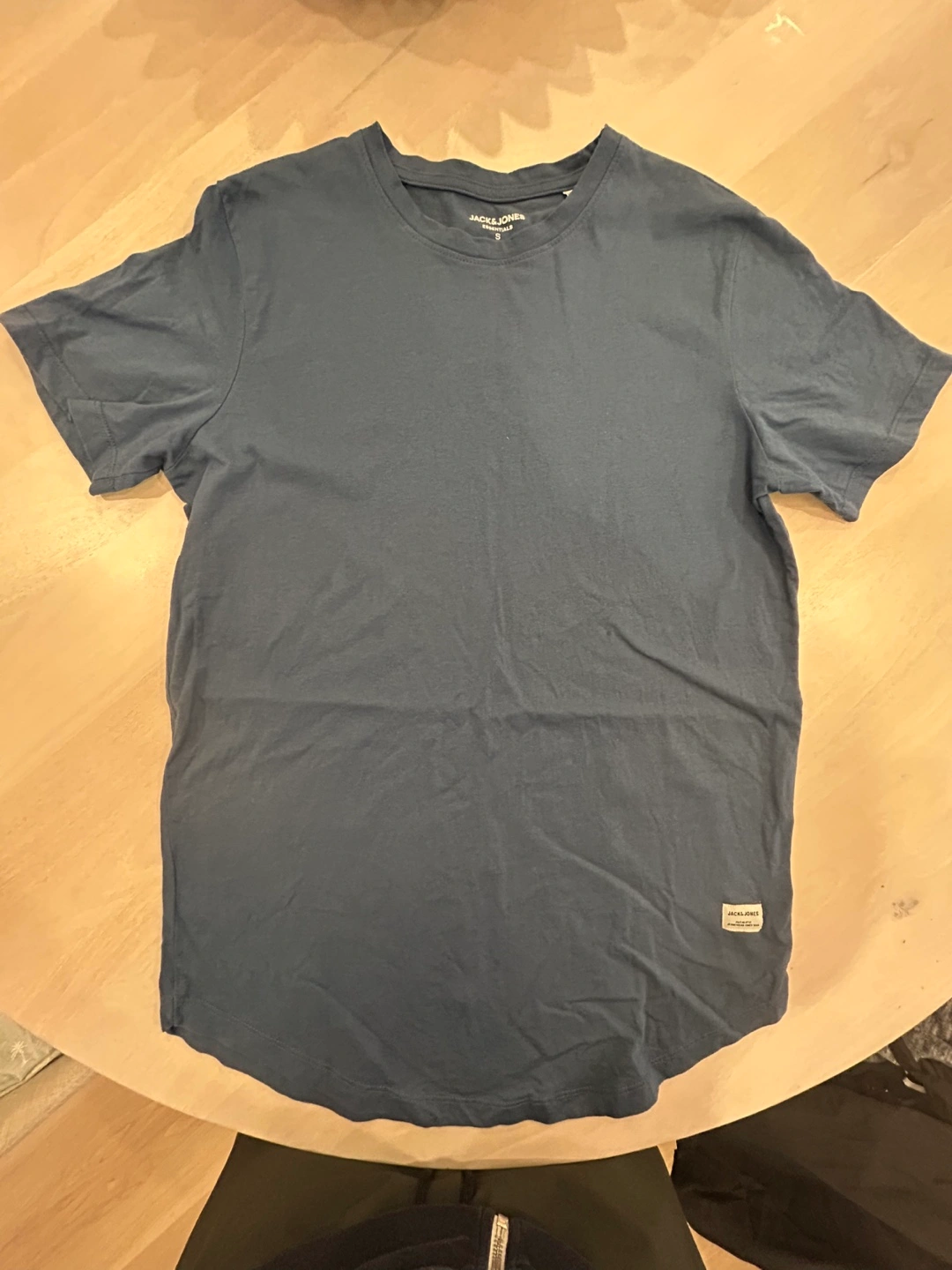Blue short sleeve t-shirt. Size small. Curved hem. Great for casual wear.