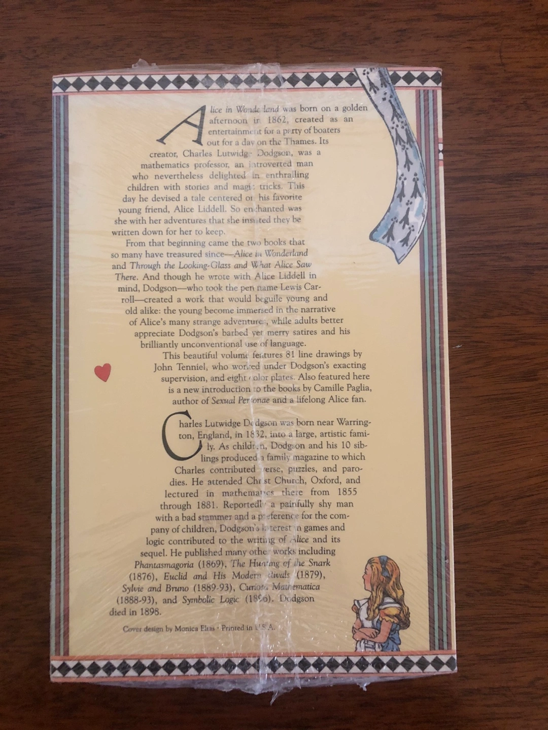 Classic children's literature. Lewis Carroll. Introduction by Camille Paglia. New - still in shrink wrap. Paperback. Yonge/Davisville pick up.
