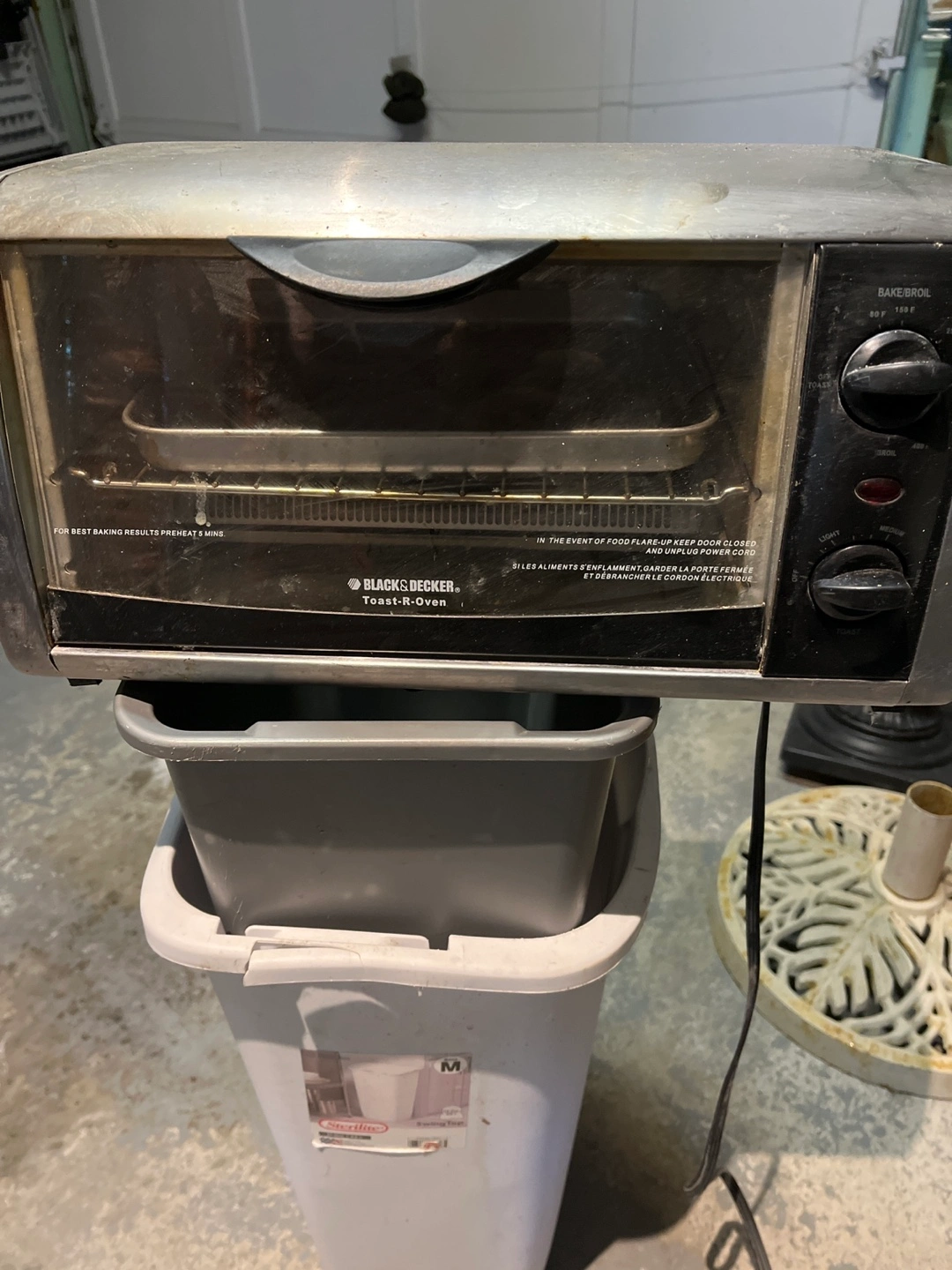 Used Black & Decker Toast-R-Oven. Silver coloured appliance. Shows signs of use.