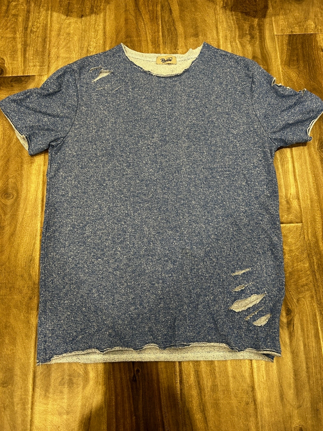 Women short sleeve t-shirt. Distressed detailing. Relaxed fit. Blue heather colour.