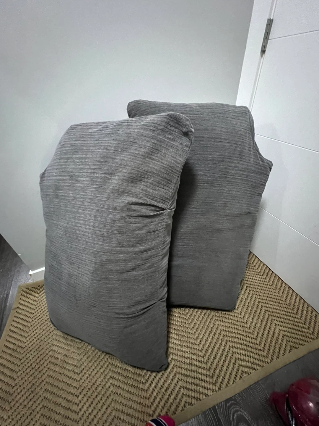 Set of nice, firm grey corduroy cushions from a Brick couch.