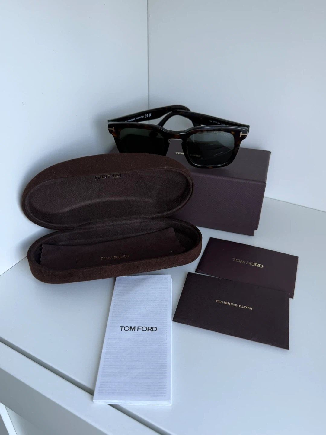 Selling a pair of Tom Ford Dax TF751 sunglasses. They're in great shape and come with the original case. The color is a stylish tortoise pattern. Size is 52-22-145.