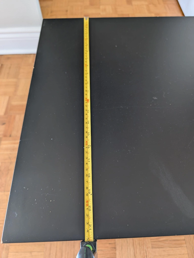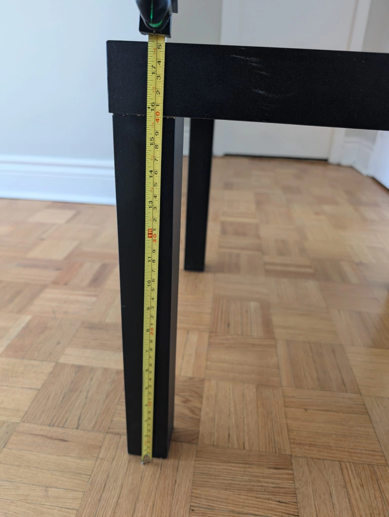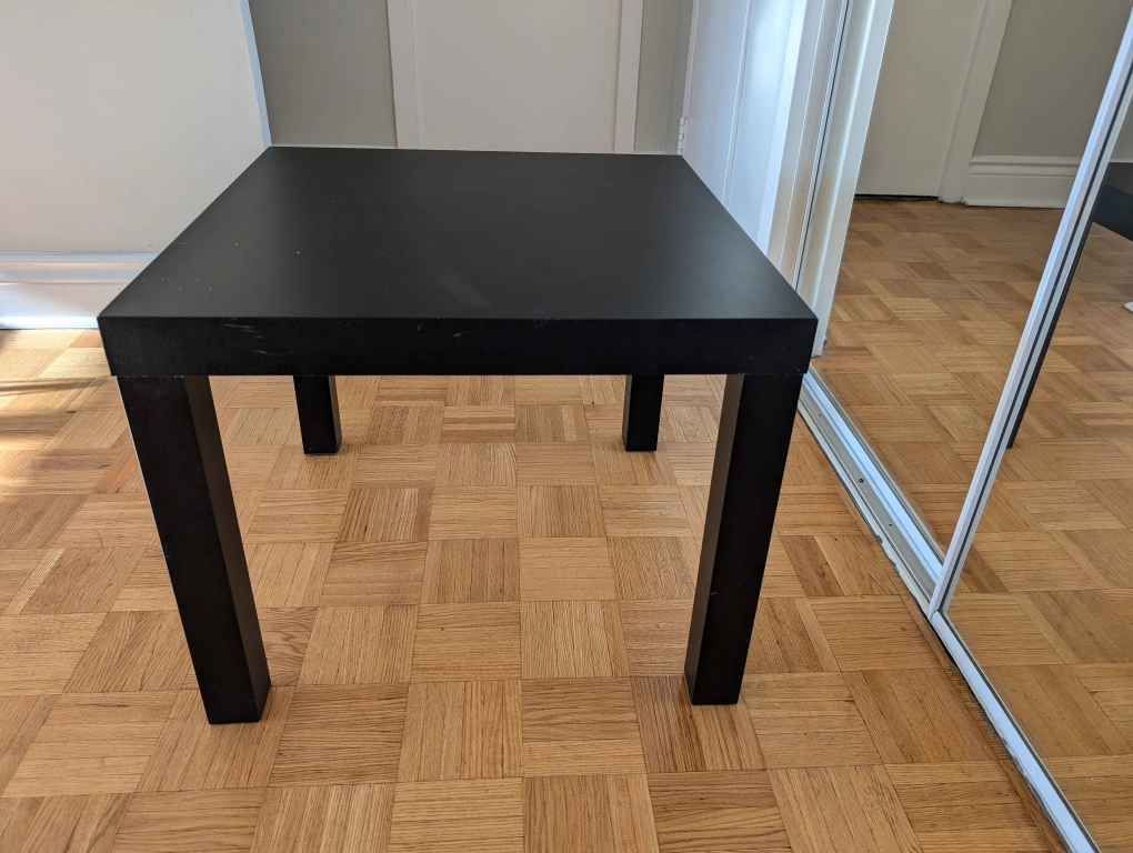 Simple black coffee table. Square top, four legs. Perfect for small spaces.