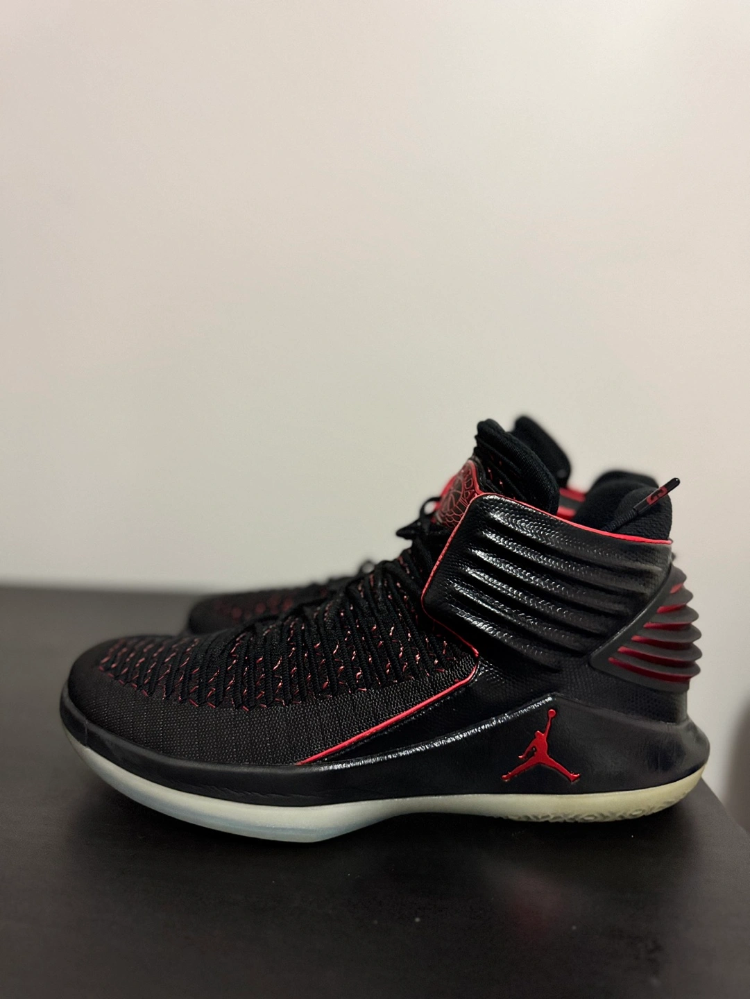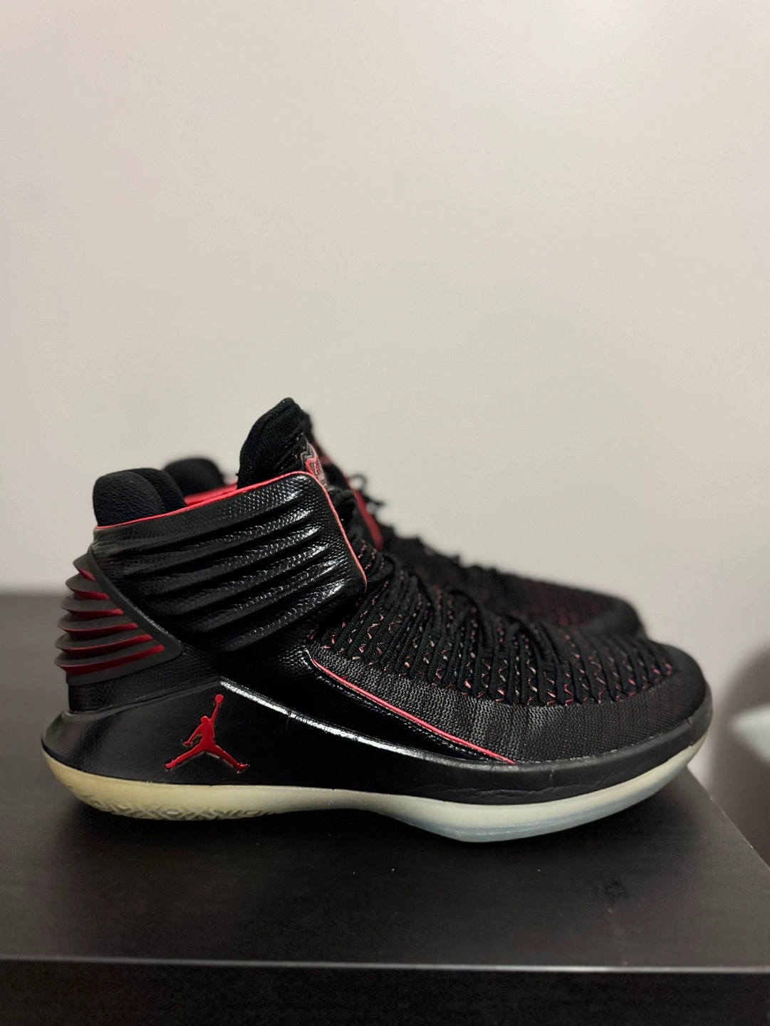 360Men's Air Jordan 32 basketball shoes. Black and red colourway. High-top design. Knit upper. Visible Air cushioning. Excellent for the court. Air Jordan 32 ‘Banned’ 2017 (11.5US) Condition: in excellent condition, no heel and toe drags, no sole separation. clean pair. shoes only Price: 175 cad cash or best offer Location: 807 Brimley Road Scarborough (pick up location) Meet up: Line 1 or Line 2 subway or downtown Please see my other listing. Happy Shopping.