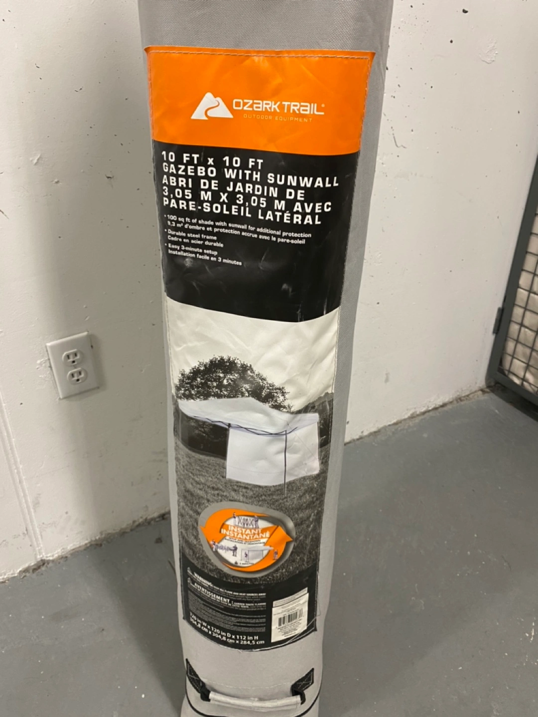 10 ft x 10 ft gazebo with sunwall. 100 sq ft of shade. Additional lateral protection. Durable and protects from sun. Easy setup in 3 minutes.