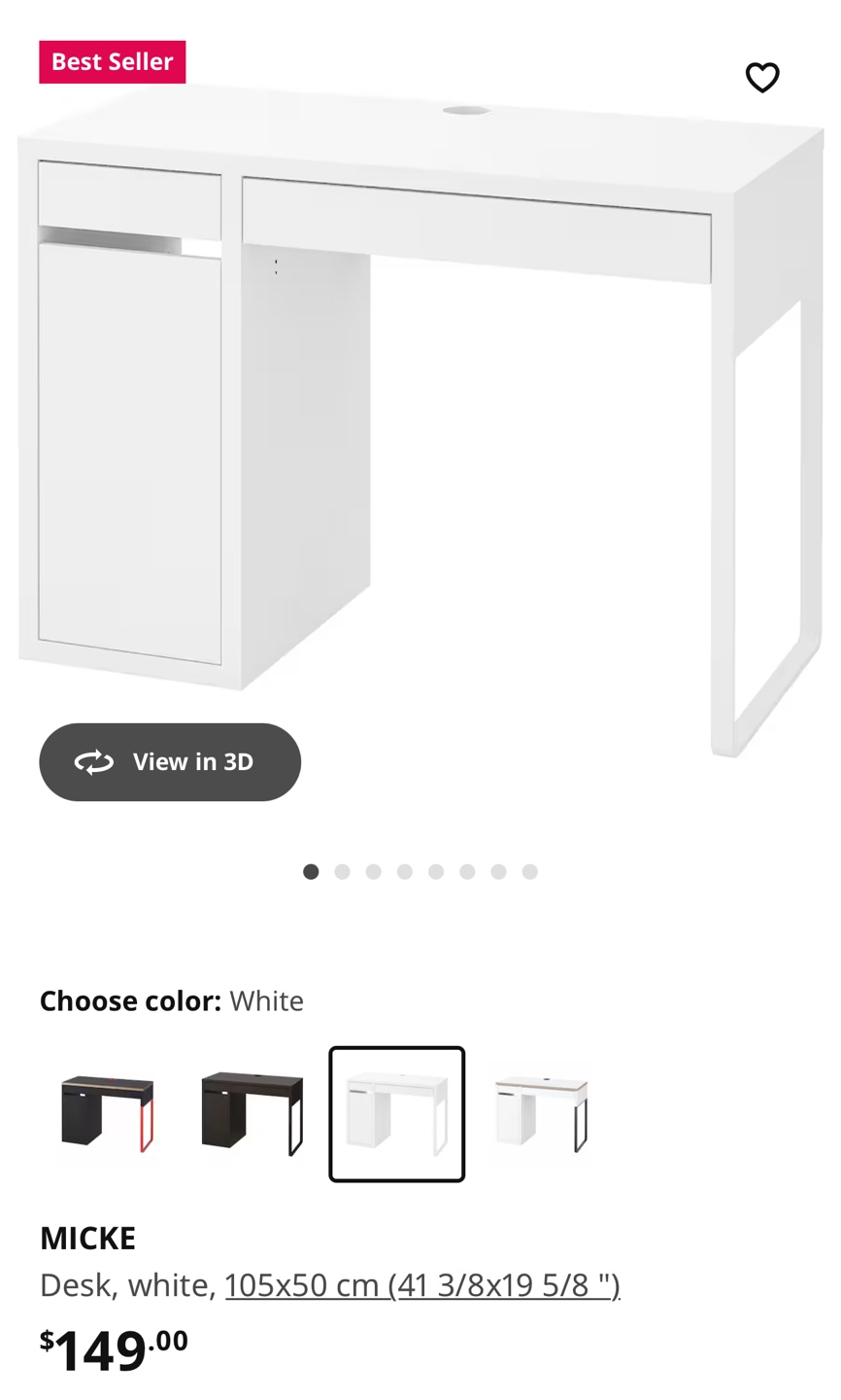 1 / 31 / 3Buy & SellIKEA MICKE Desk - WhiteIKEA MICKE Desk - White$75White desk with one drawer and cabinet. Small, simple design. Some scratches on table top. Pickup near Yonge and CollegeWHERE TO MEETNear College StationView MapSELLERverifiedraniaChurch Yonge Corridor23817 reviews2 chats·2 favorites·51 viewsSEND CHAT TO SELLERHi rania! I’m interested in your listing.Hi rania! I’m interested in your listing.Get the Karrot app to chatSign In to chat