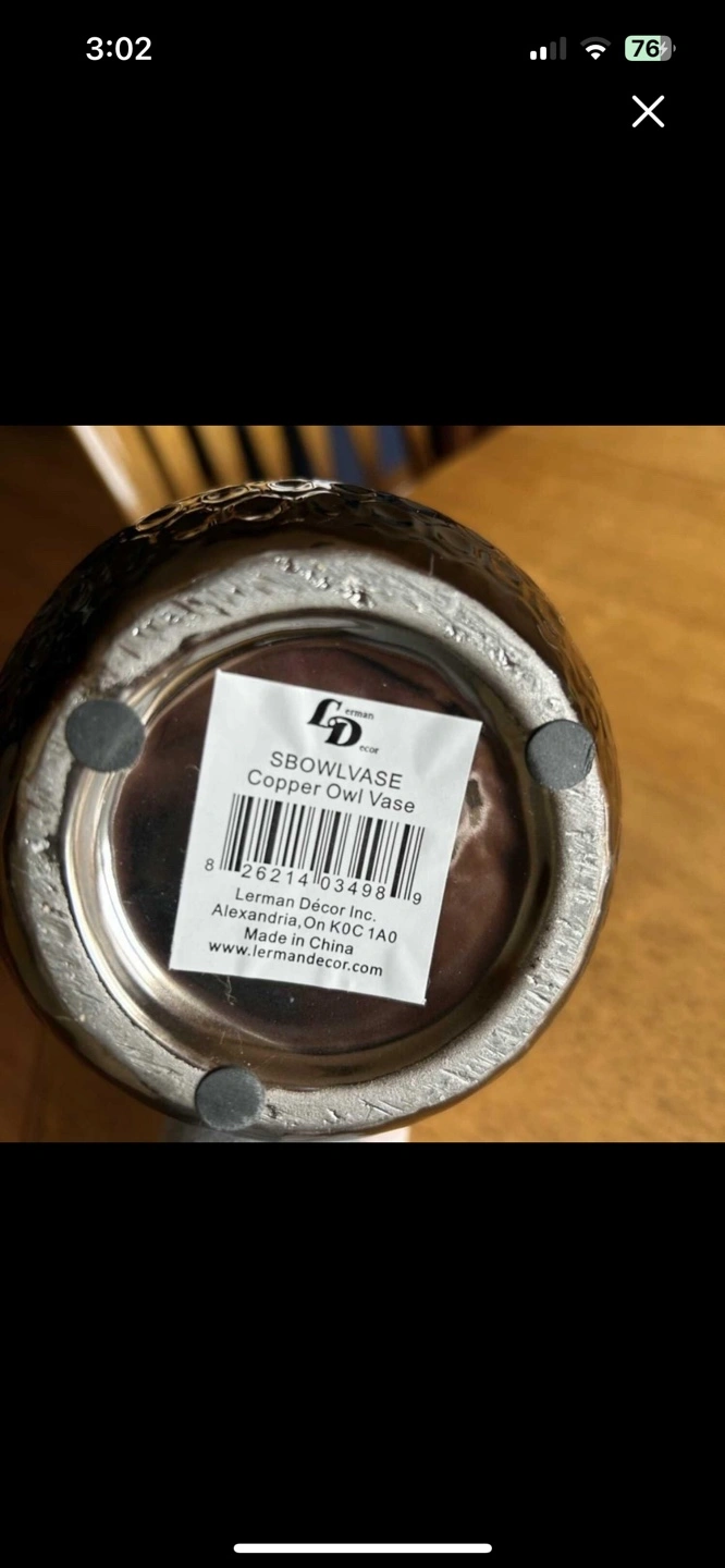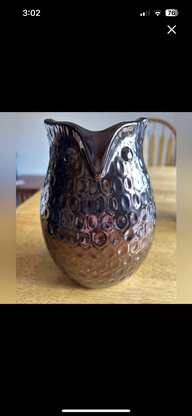 Unique copper coloured owl vase. Textured surface. Excellent condition.
