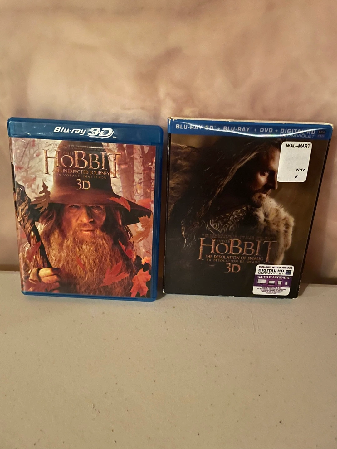 Two Blu-Ray 3D movies. The Hobbit: An Unexpected Journey and The Hobbit: The Desolation of Smaug. Includes Blu-Ray, DVD, and Digital HD copies.