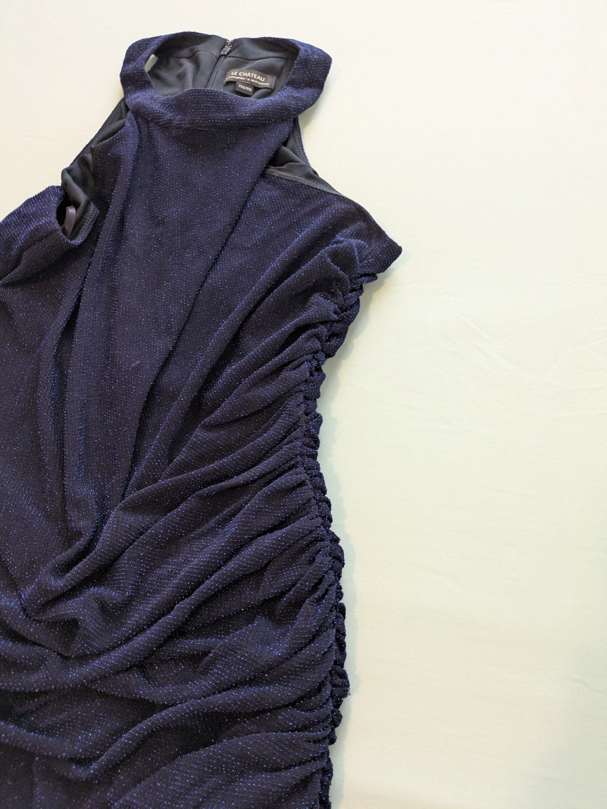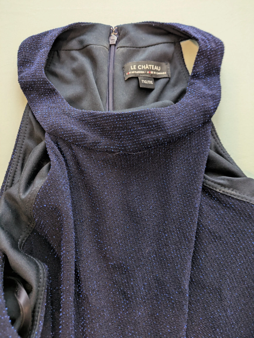 Le Chateau Navy Blue Glitter Halter Maxi Dress - Size 1X
