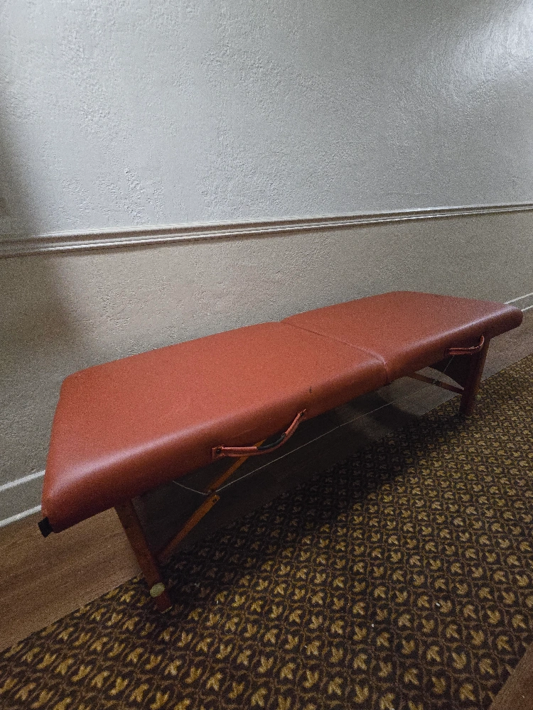 NEED GONE ASAP. Used portable massage table in good condition, with adjustable legs. Structurally and functionally sound, has some visible minor wear and tear and is *missing the headrest*. See 2nd picture for all the specks. *PICK UP ONLY* at Yonge & Lawrence. Please don't message just to ask if it's available, because if it's posted, then it's available!!! *Price is negotiable, please no lowball offers*!