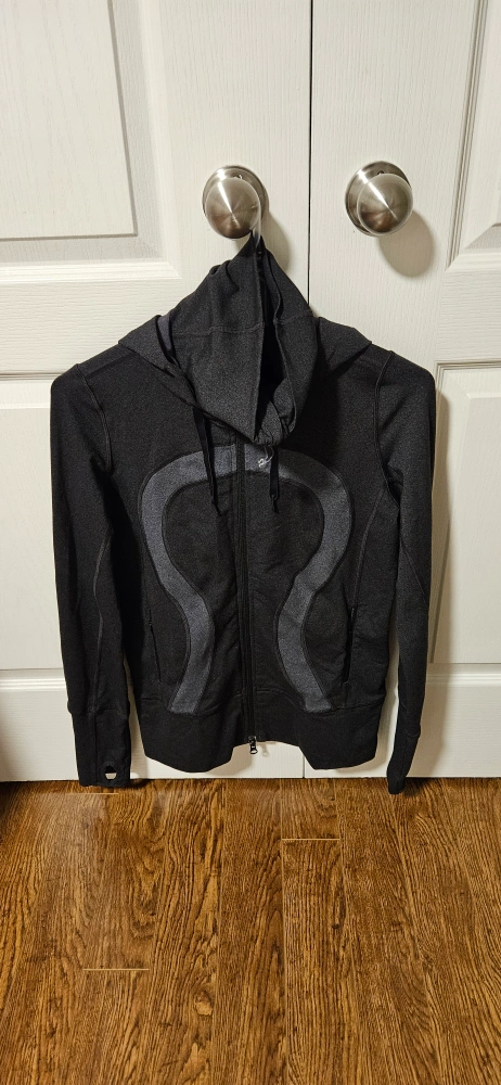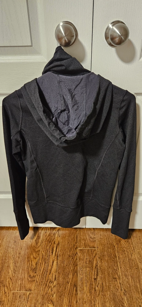 Lululemon scuba hoodie. Size 6. Dark grey. Full zip. Thumbholes. Good used condition.