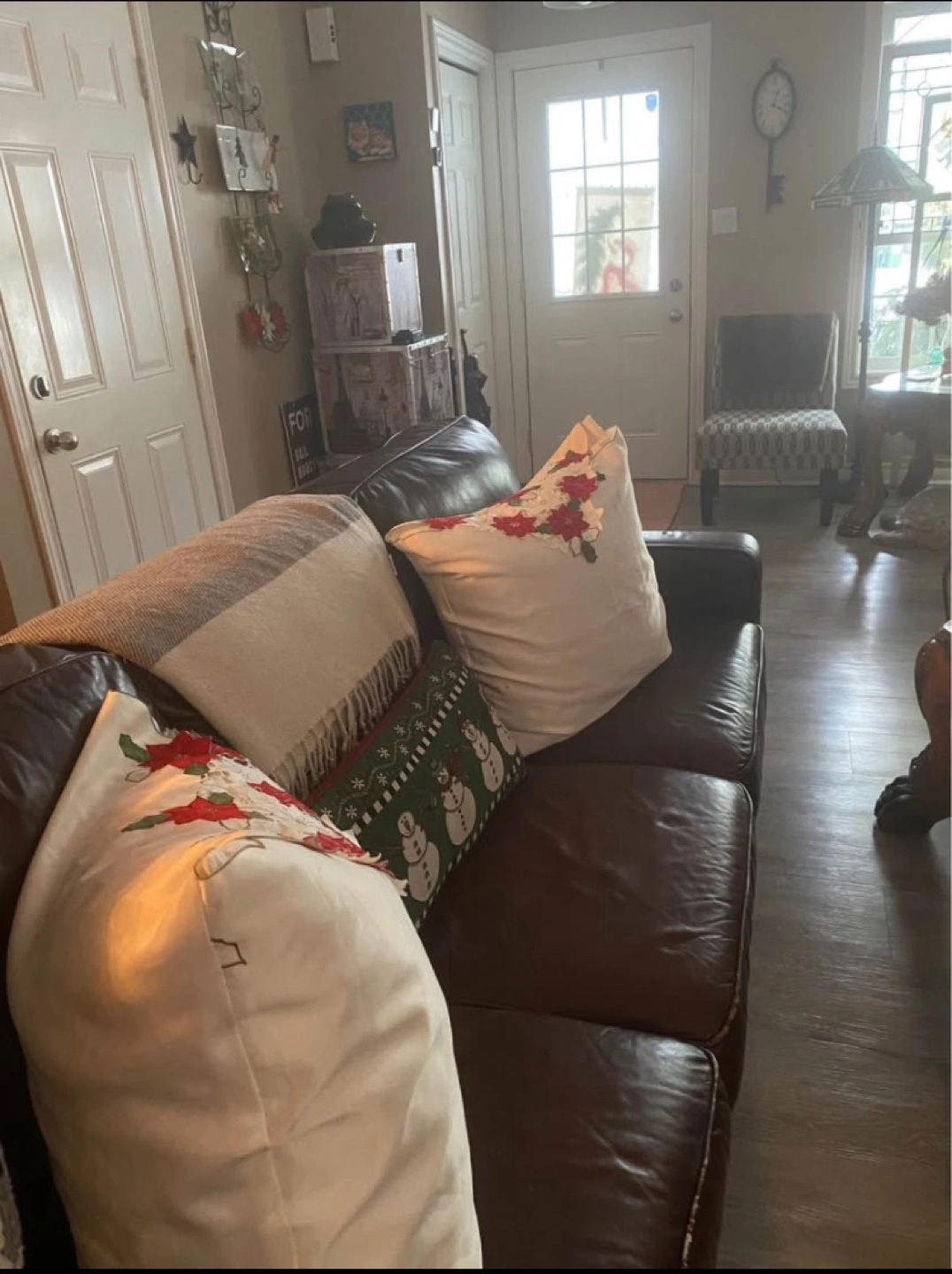 Buy & SellBrown leather sofa 7 feet longBrown leather sofa 7 feet long$150Three- seats Good condition. Pillows and throw not includedConditionGoodDimensions 7 feet WHERE TO MEETCheck LocationView MapSELLERGailSt. Thomas674 reviews0 chats·0 favorites·76 views