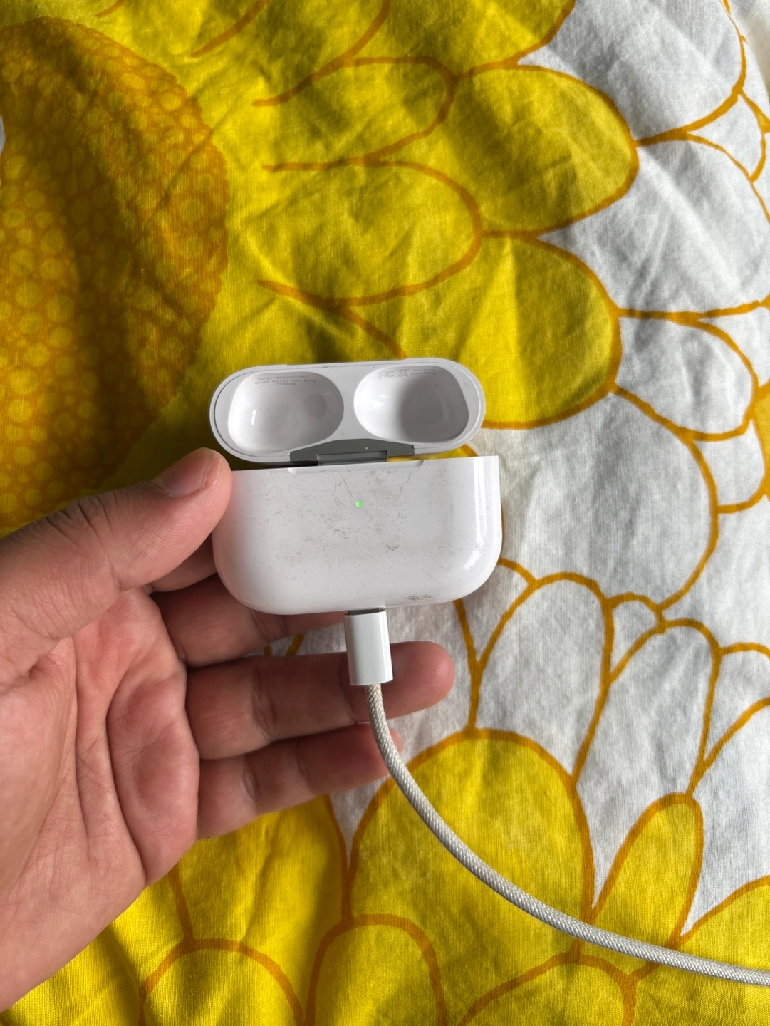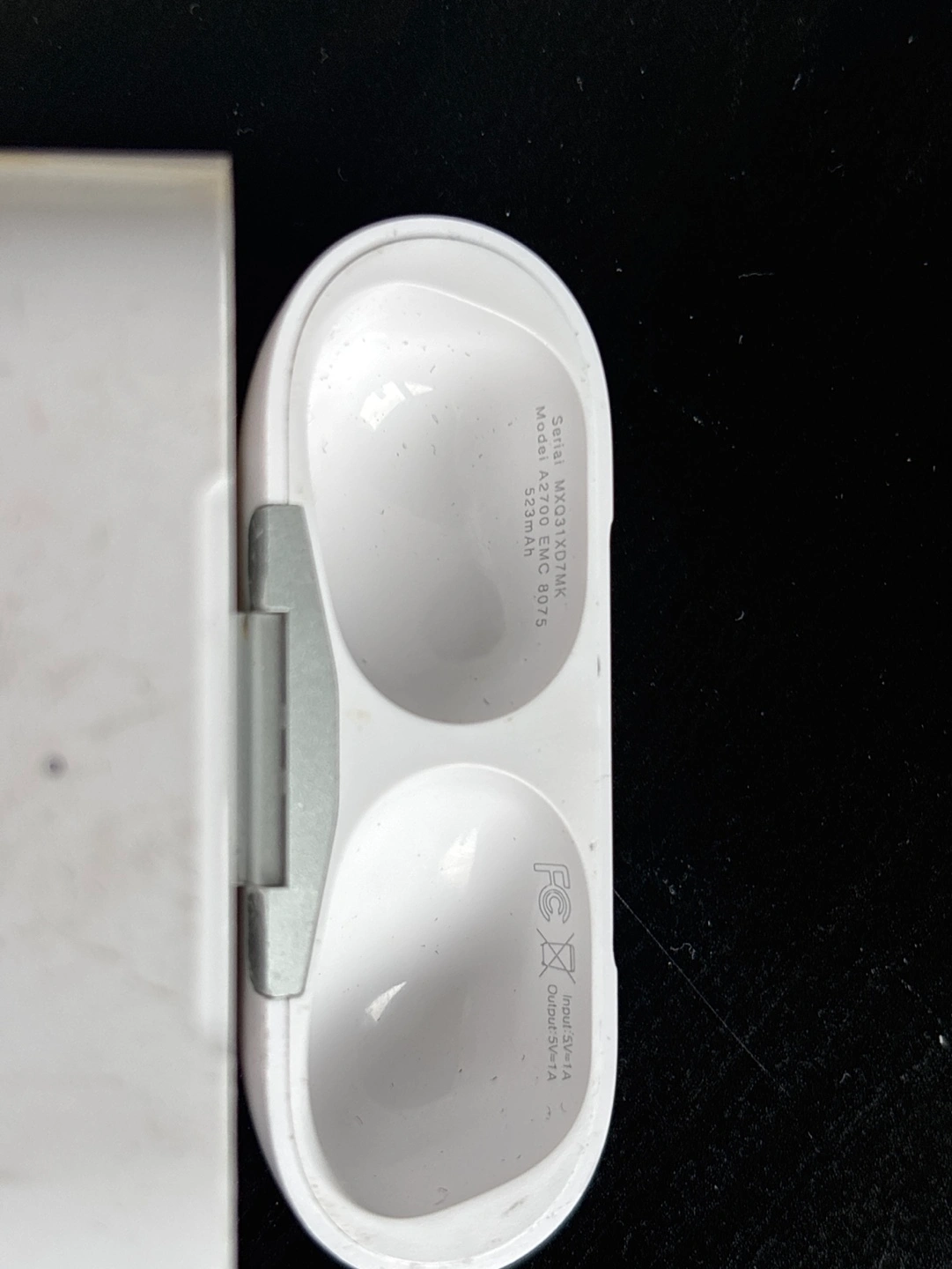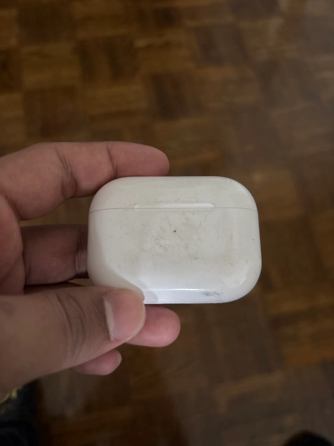 Pre-owned Apple AirPods charging case. Shows some wear. Good for replacing a lost or damaged case. Charging port functional. Minor scratches and scuffs.