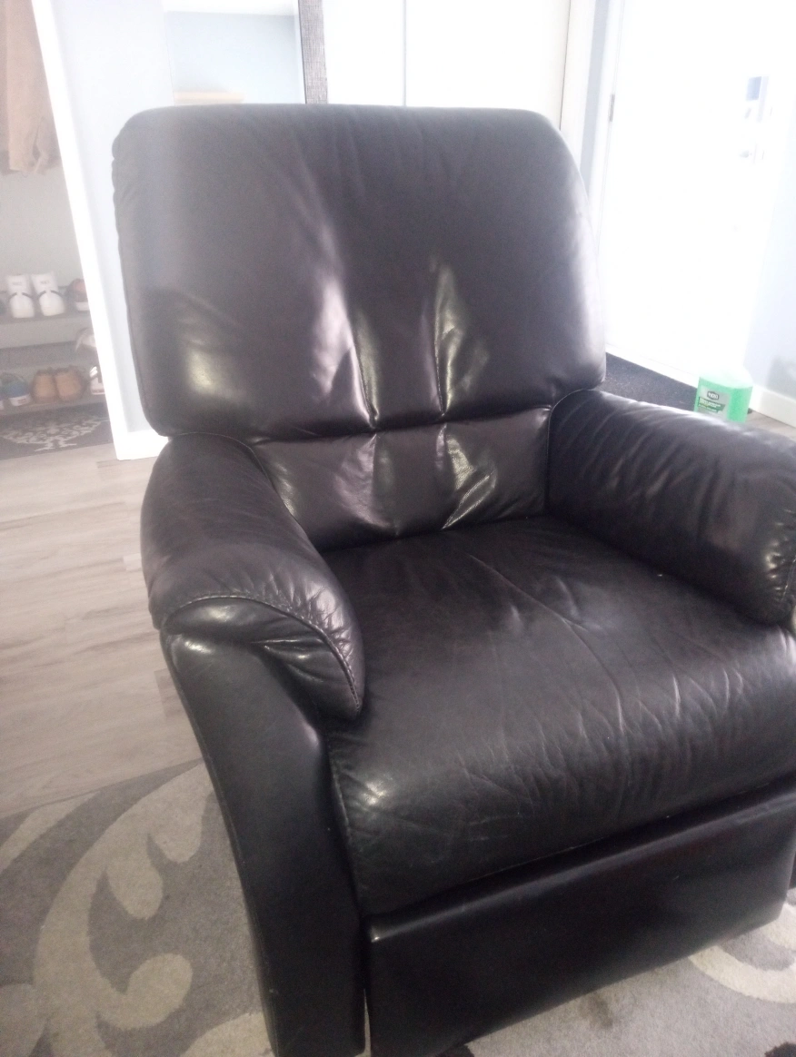 Two La-Z-Boy recliner chairs. One navy blue, one black. ok condition. Leather upholstery. Reclining mechanism. Comfortable and stylish.
