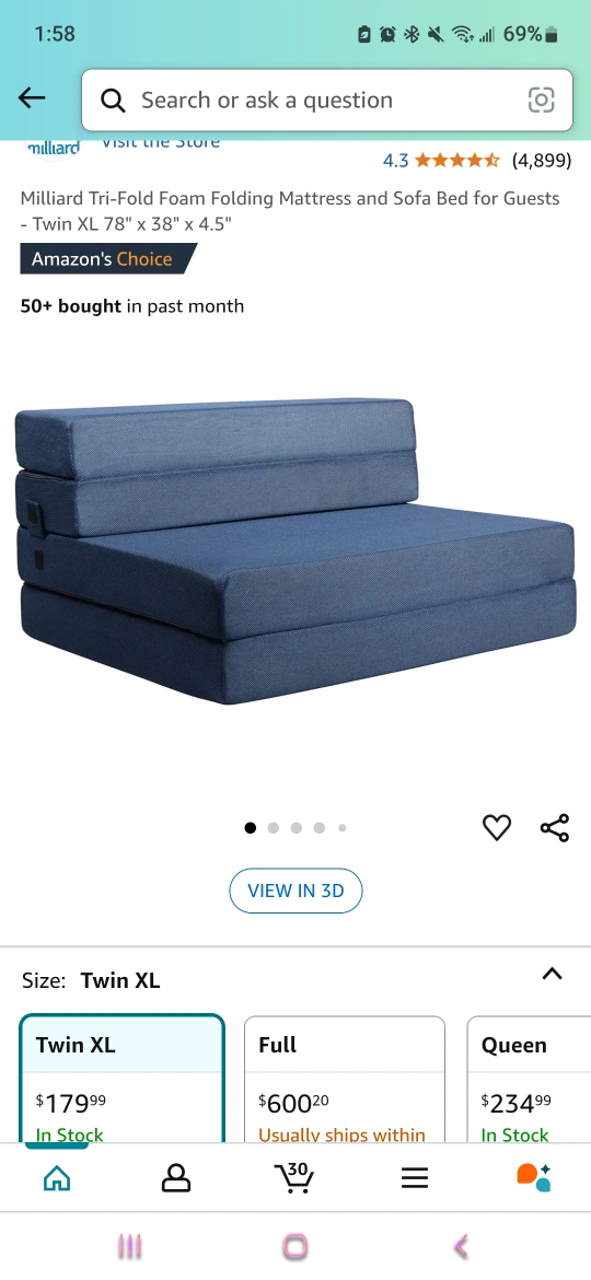 Milliard Tri-Fold Foam Folding Mattress and Sofa Bed - Twin XL