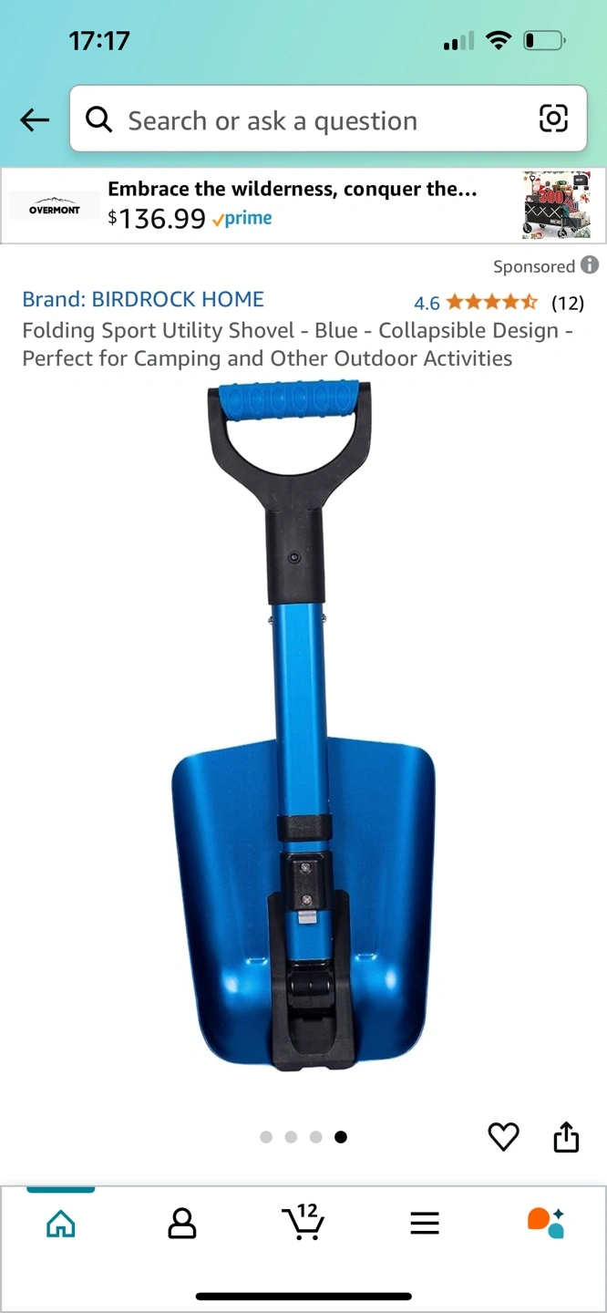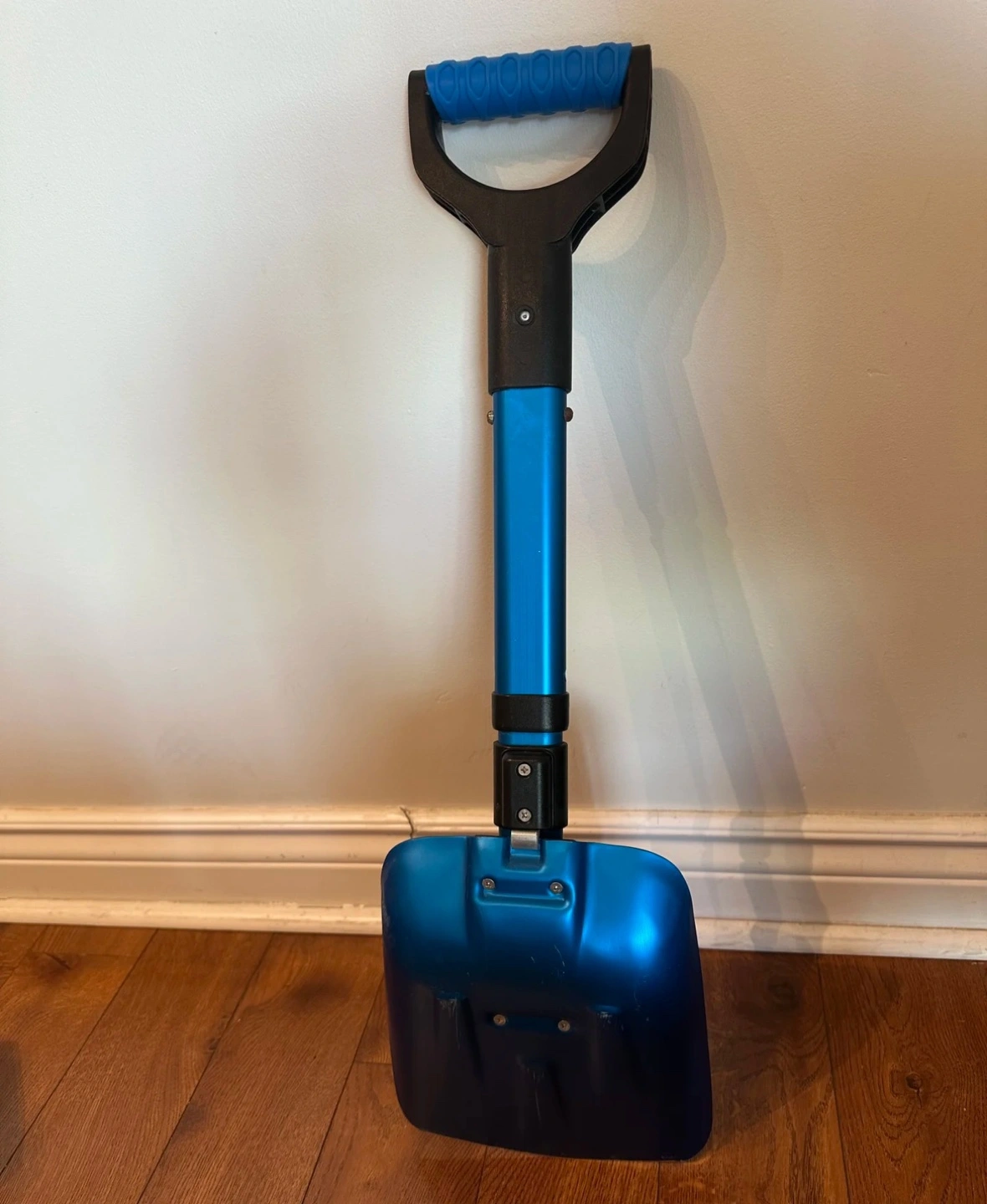 122Blue folding shovel. Collapsible design. Perfect for camping and other outdoor activities.