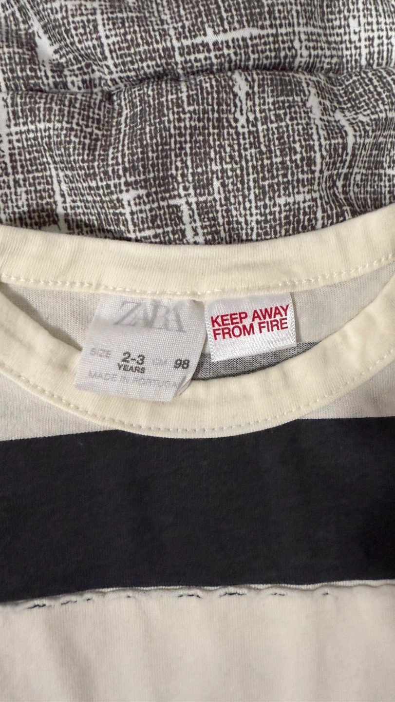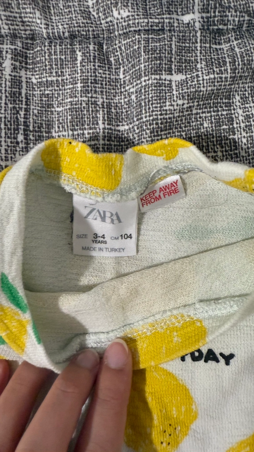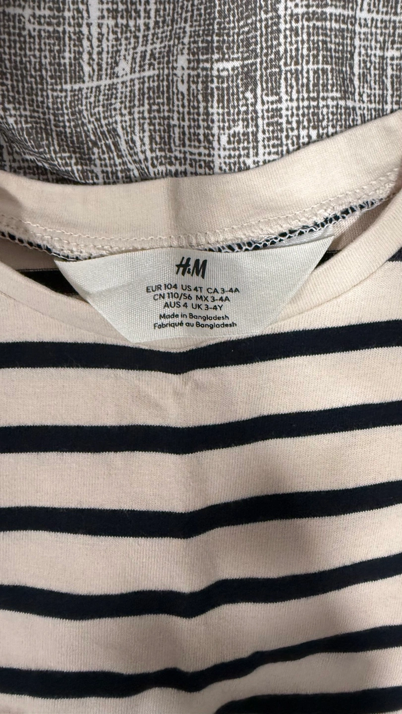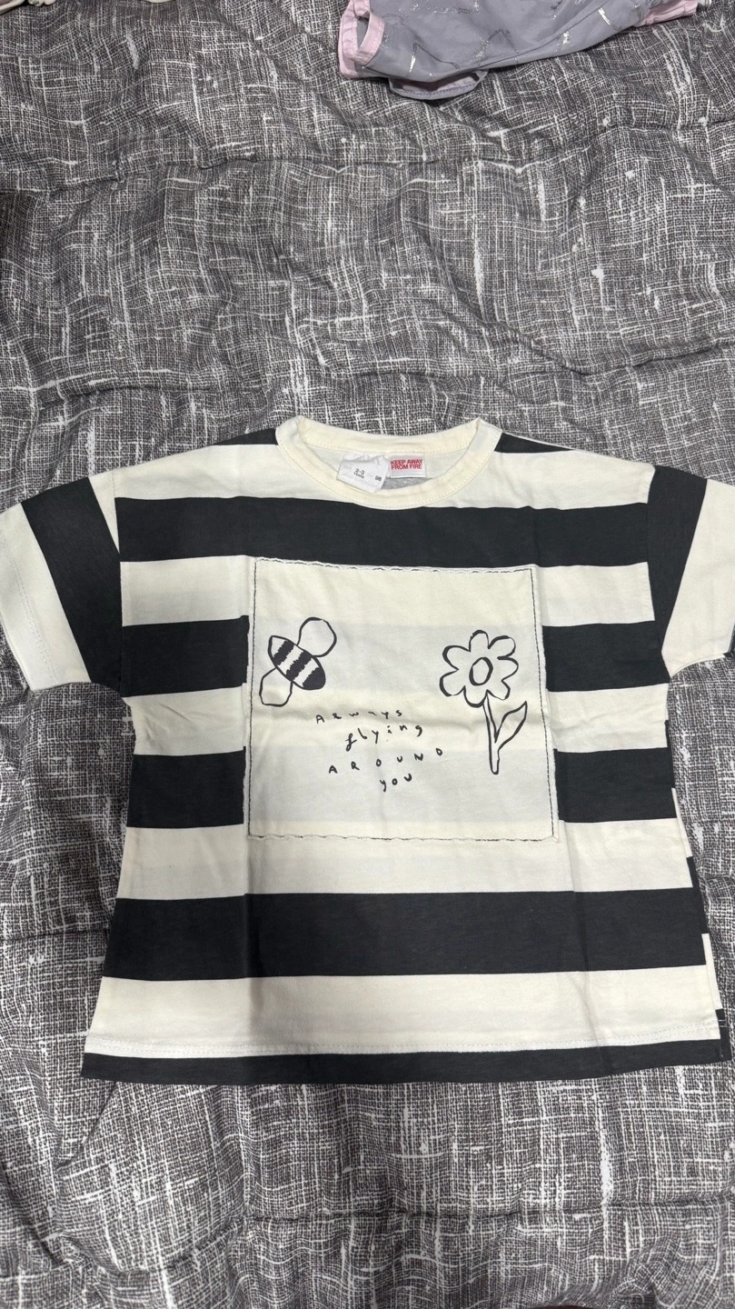 5 adorable girls' t-shirts. One H&M striped shirt, one ZARA striped shirt with bee and flower design, and one H&M lemon print shirt. Size 98 (4 years). Soft cotton. Pre-loved.