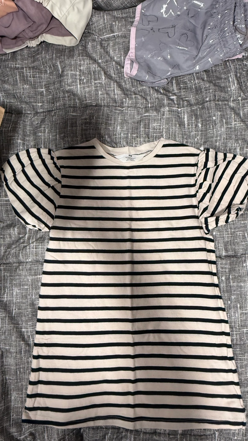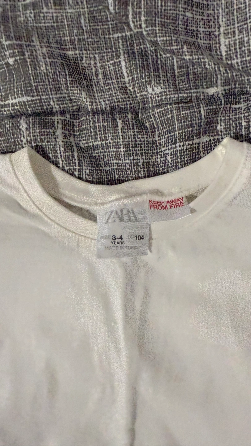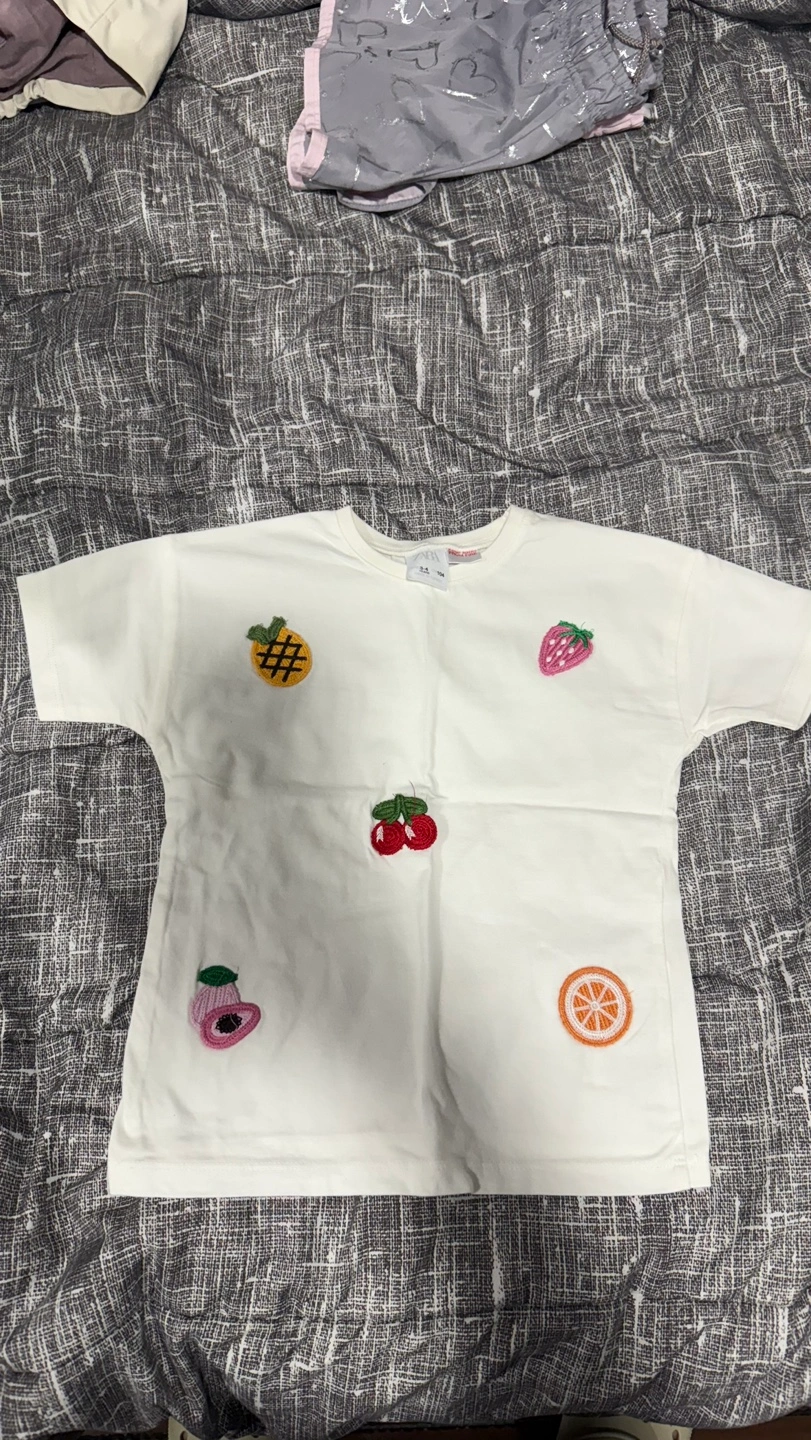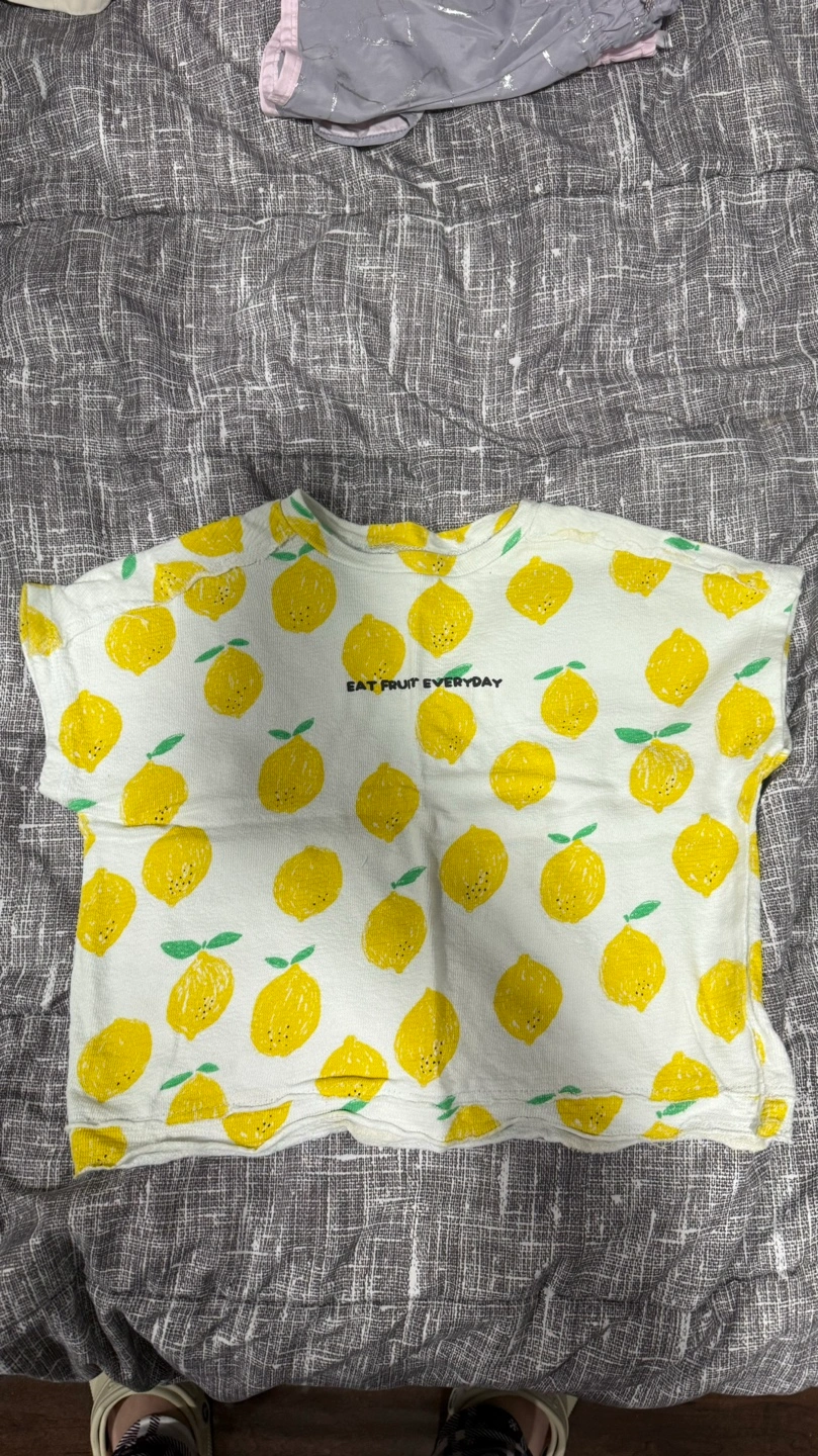 5 adorable girls' t-shirts. One H&M striped shirt, one ZARA striped shirt with bee and flower design, and one H&M lemon print shirt. Size 98 (4 years). Soft cotton. Pre-loved.