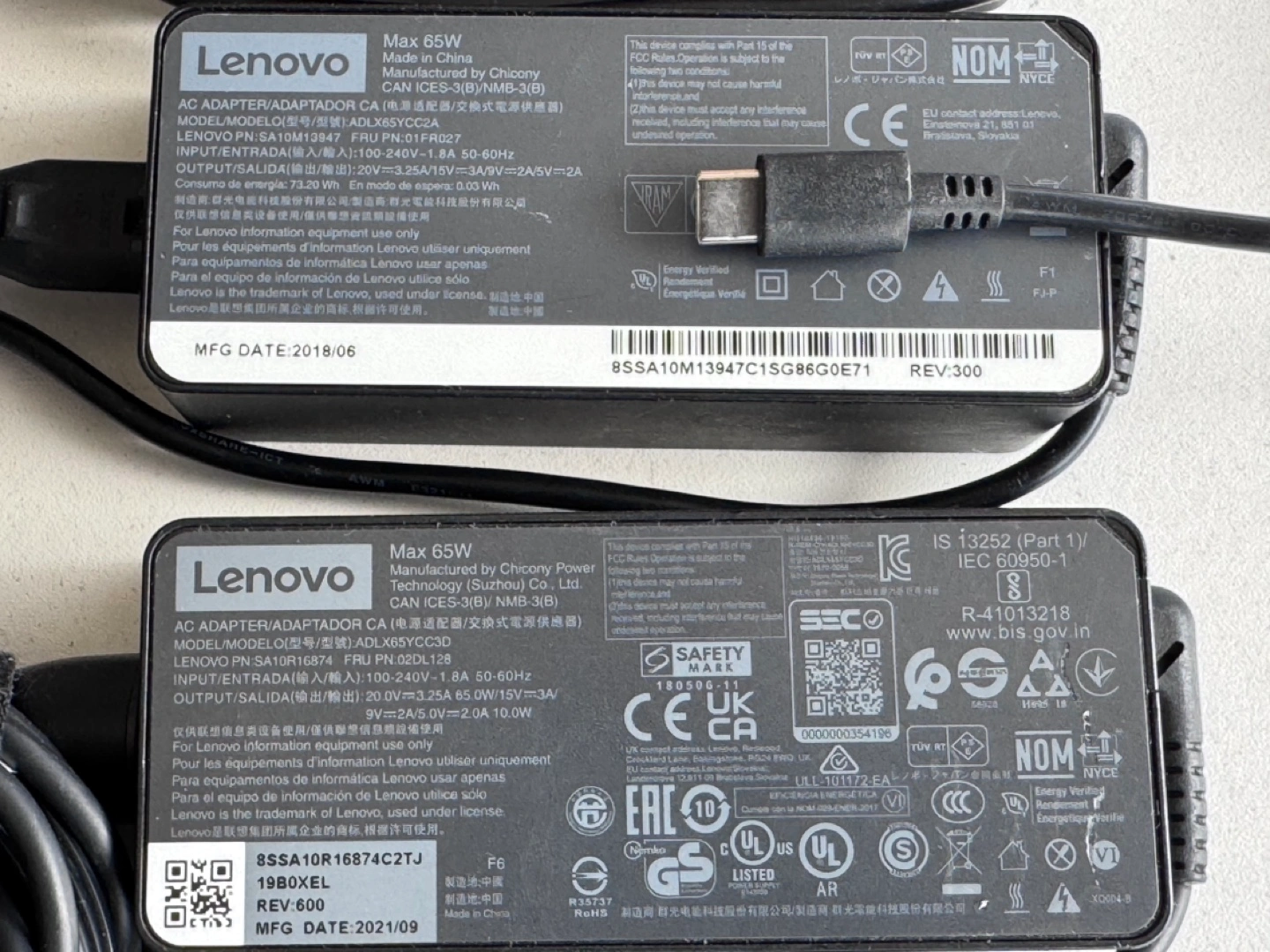 Lenovo ThinkPad Type C chargers/ Ac adapters.