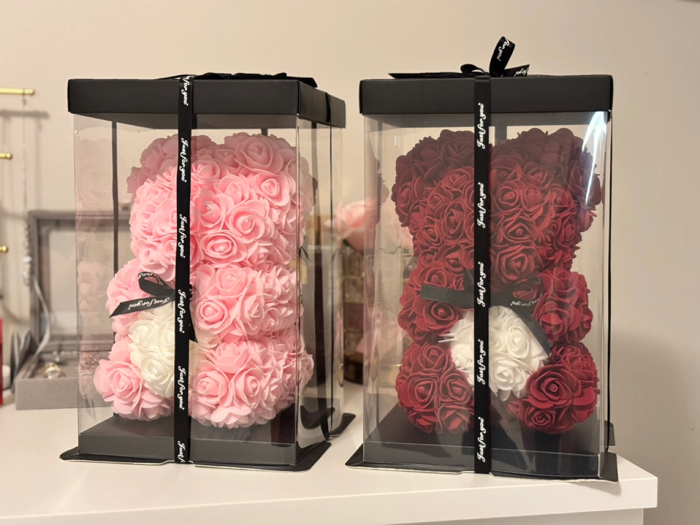 Two rose bears in clear boxes, one pink and one burgundy. Each bear has a white rose centre. Perfect gifts for Valentine's Day or Anniversaries. One 10$, 2-15$. Pick up in Langley β¨