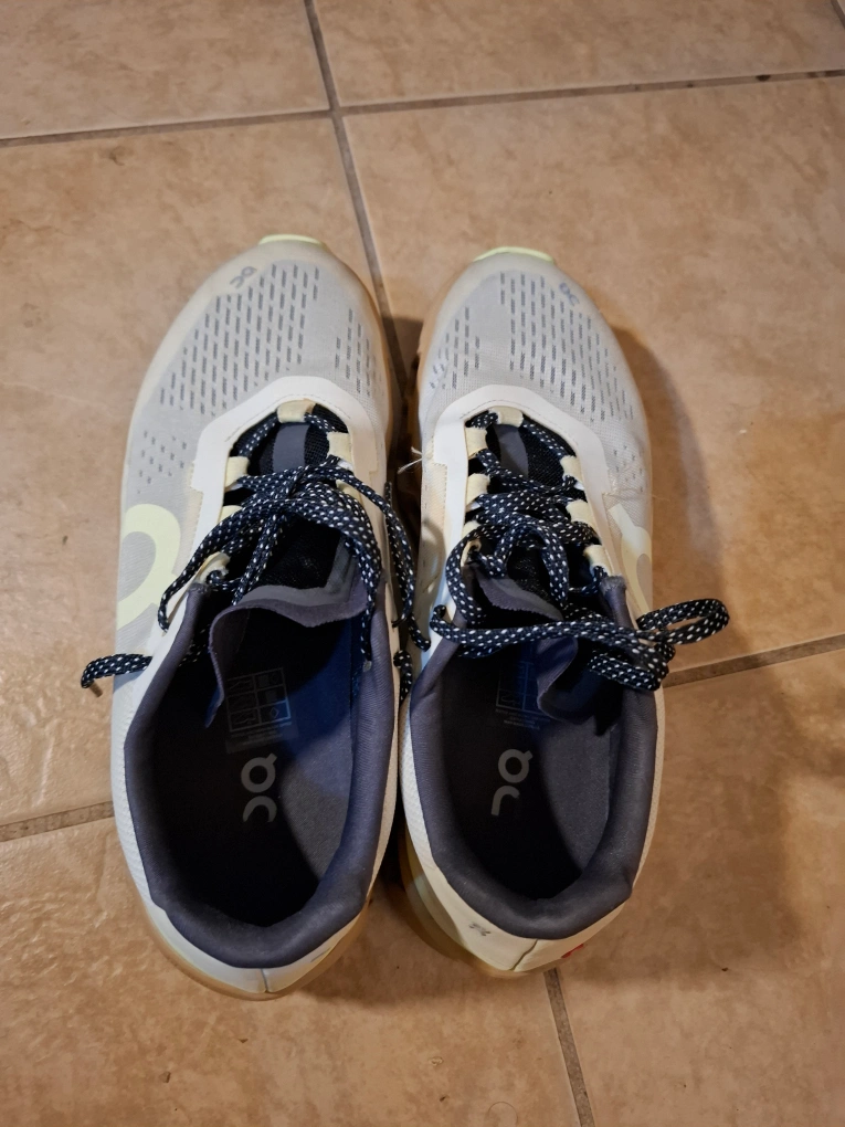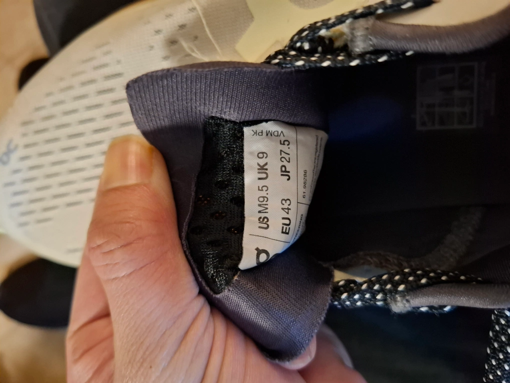 Men's running shoes. Size US 9.5, UK 9, EU 43, JP 27.5. Light grey and beige colour. Waterproof. Minimal wear.