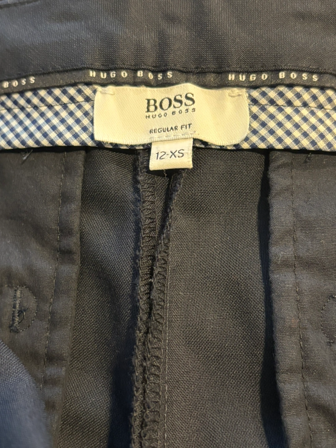 Hugo Boss boy’s navy dress pants. Regular fit. Size 12-XS. Flat front. Two pockets. Excellent condition. Zipper & clip closure. Waist approx. 29” Inseam approx 25”