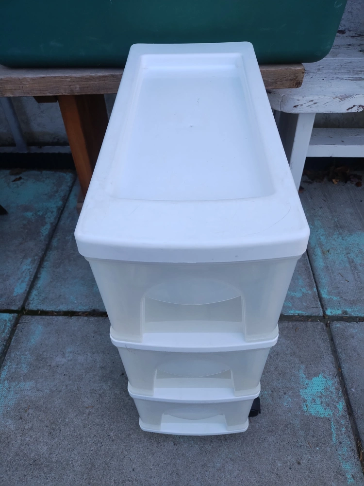 Rolling cart- ****will trade for 1 clean, large Rubbermaid tub with lid. Width/height/depth in inches; 8 w x 22.25 h x 17.50 d VVG and CLEANED condition. Killarney SW.