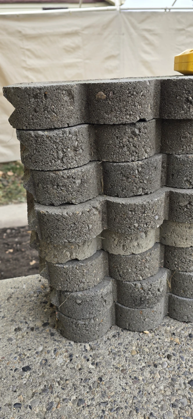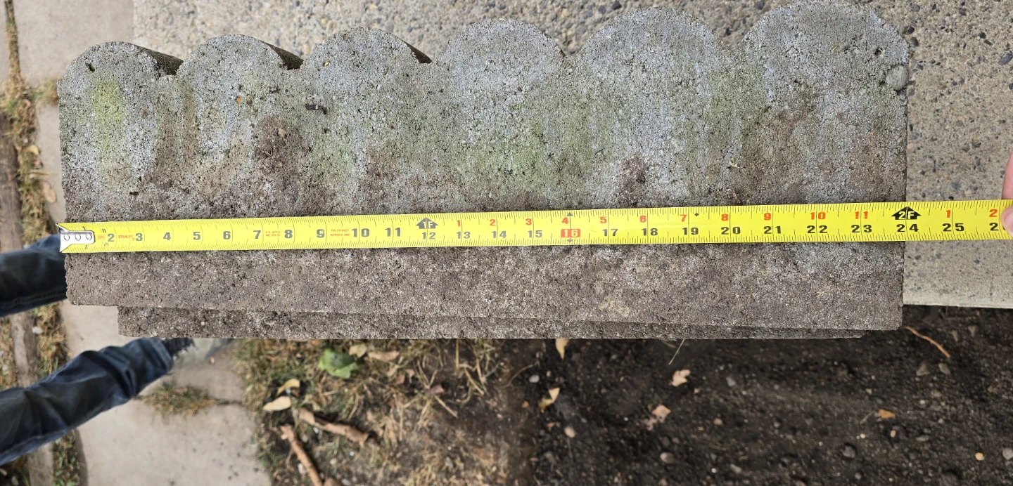 Add a touch of elegance to your garden with these decorative concrete edging pieces, each measuring 24 inches long and 3 inches wide and 8 inches high; these used edging stones are perfect for defining flower beds, pathways, or creating unique landscape borders. They are in good condition and ready to enhance your outdoor space!