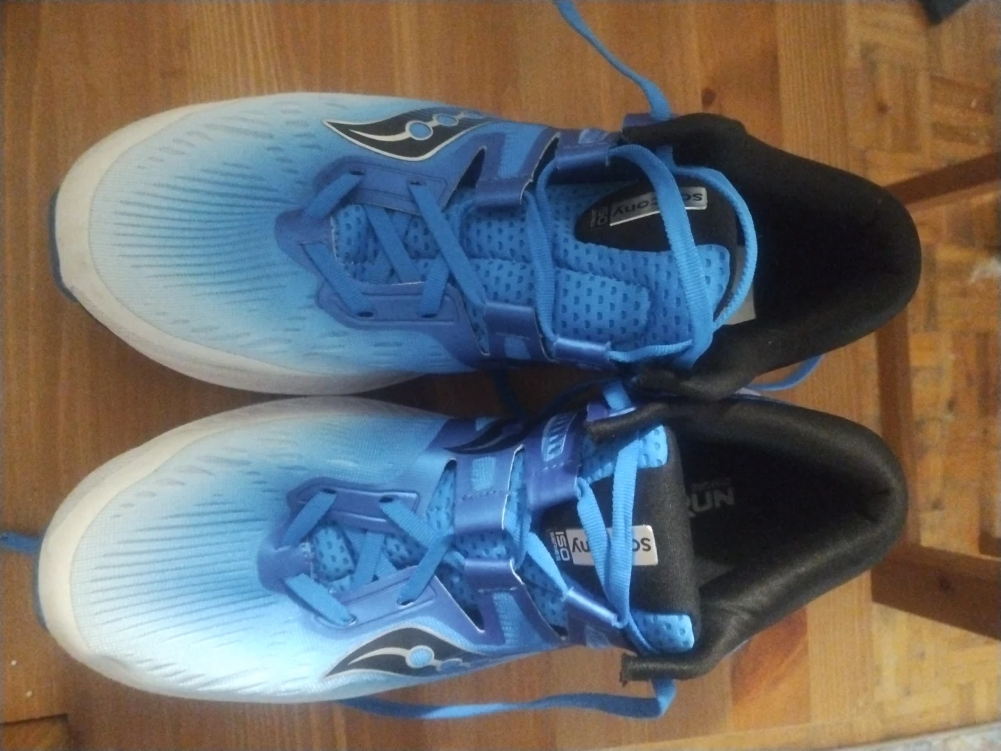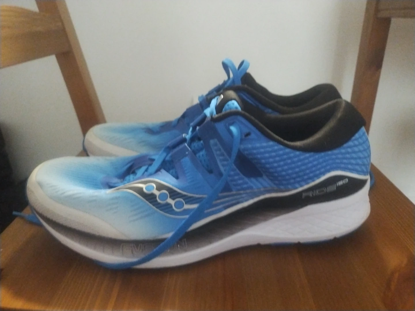 Saucony Ride 150 running shoes in a vibrant blue colour. These shoes are designed for comfort and performance. Breathable mesh upper and cushioned sole.