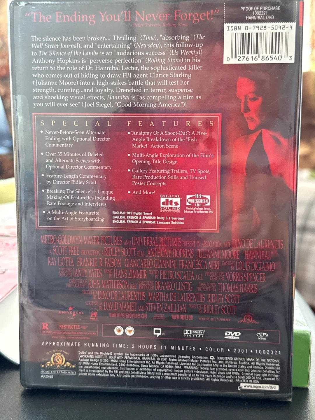 Hannibal Special Edition 2-Disc Set DVD. Features over 35 minutes of deleted and alternate scenes. Includes optional director commentary and breaking the silence featurette.