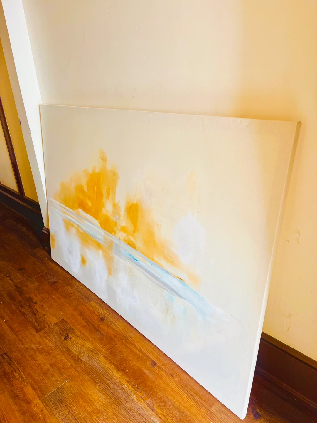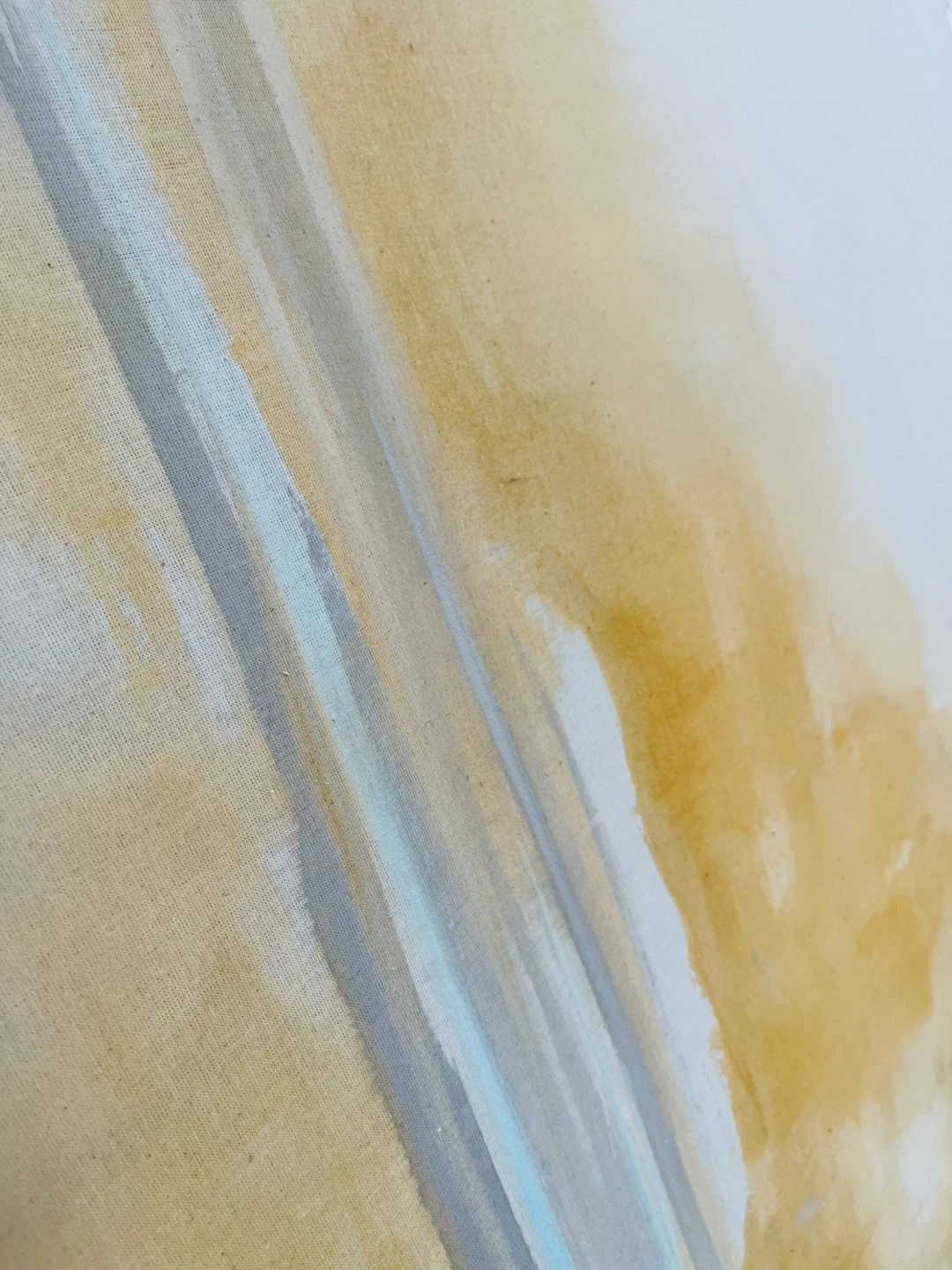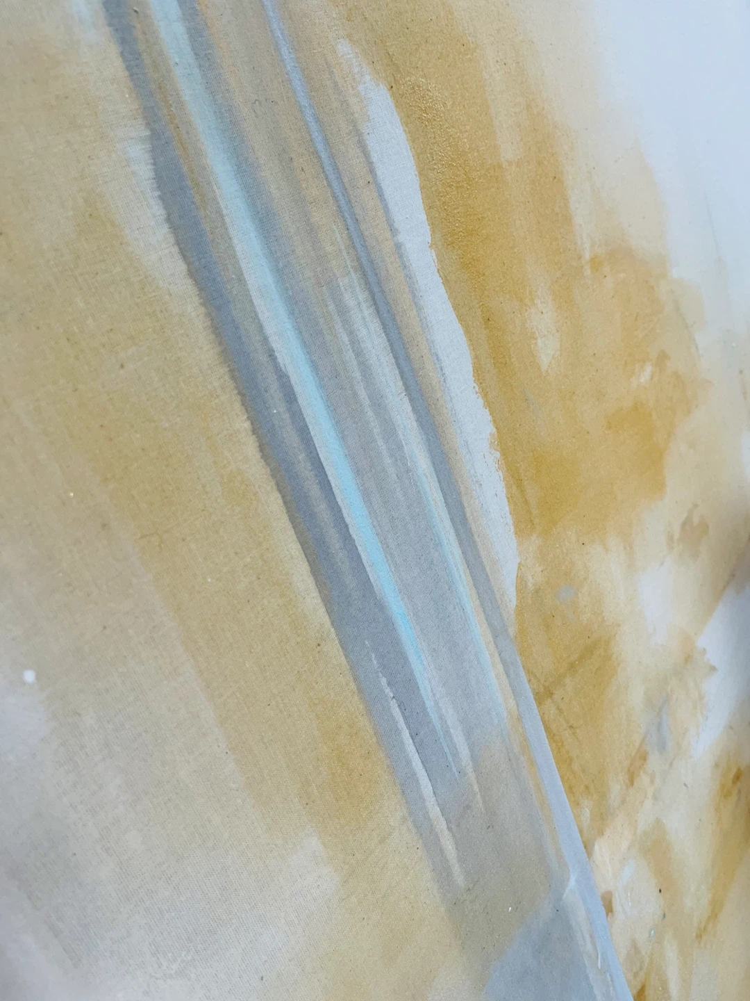Large abstract canvas painting with neutral tones and a subtle horizon line. Features textured brushstrokes and a modern aesthetic. Ready to hang for any room!