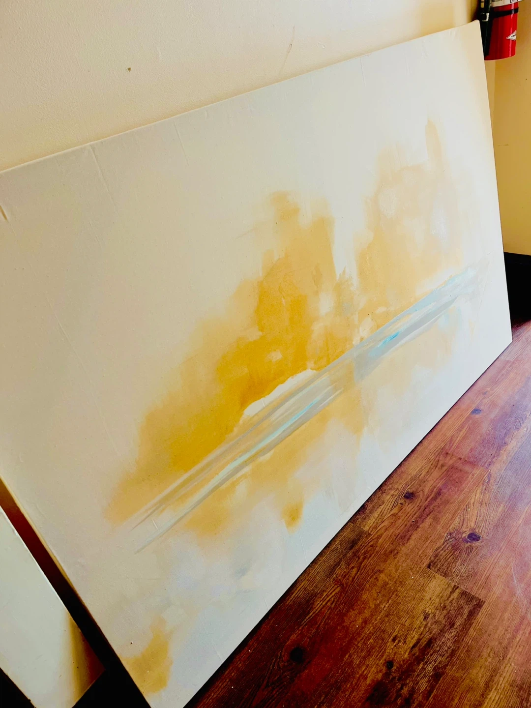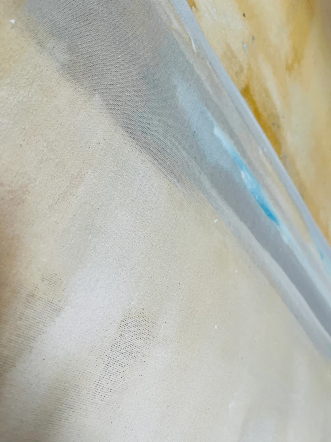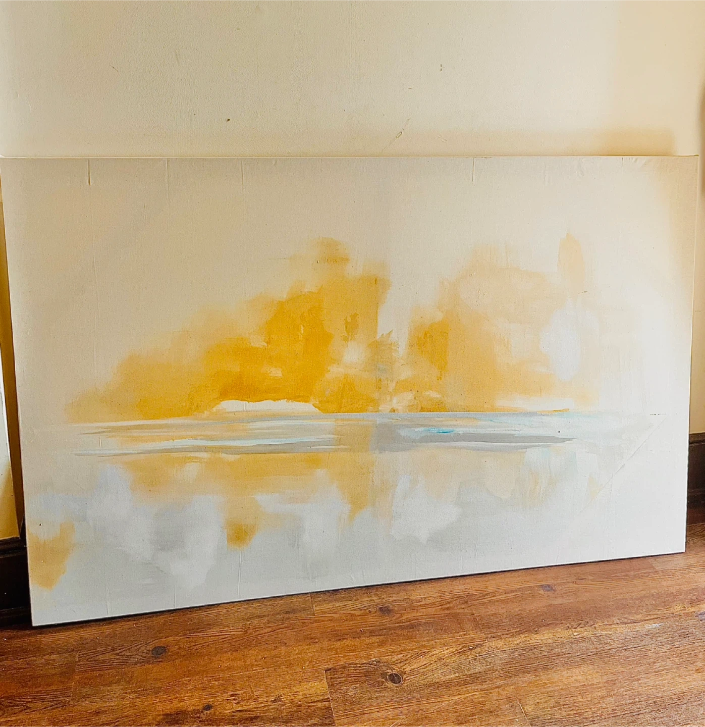 Large abstract canvas painting with neutral tones and a subtle horizon line. Features textured brushstrokes and a modern aesthetic. Ready to hang for any room!